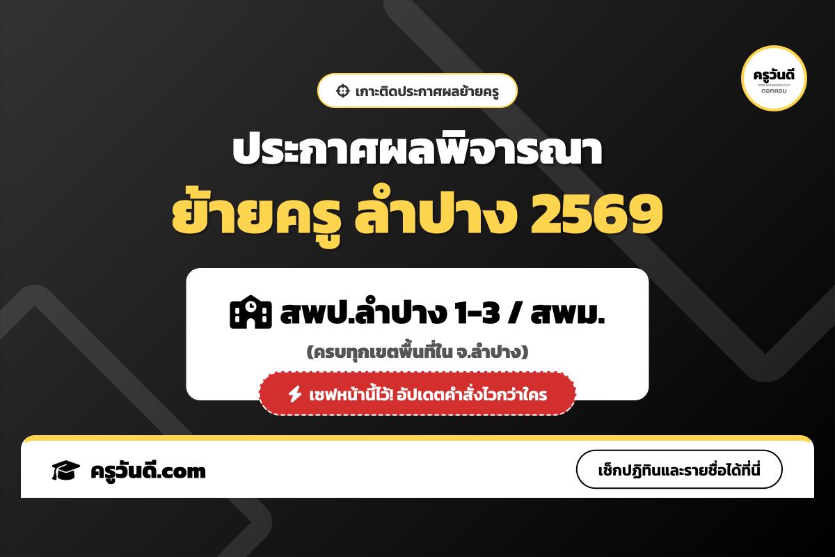 เกาะติด! ประกาศผลพิจารณาย้ายครู 2569 จังหวัดลำปาง (สพป.ลำปาง 1-3 / สพม.ลำปาง ลำพูน)