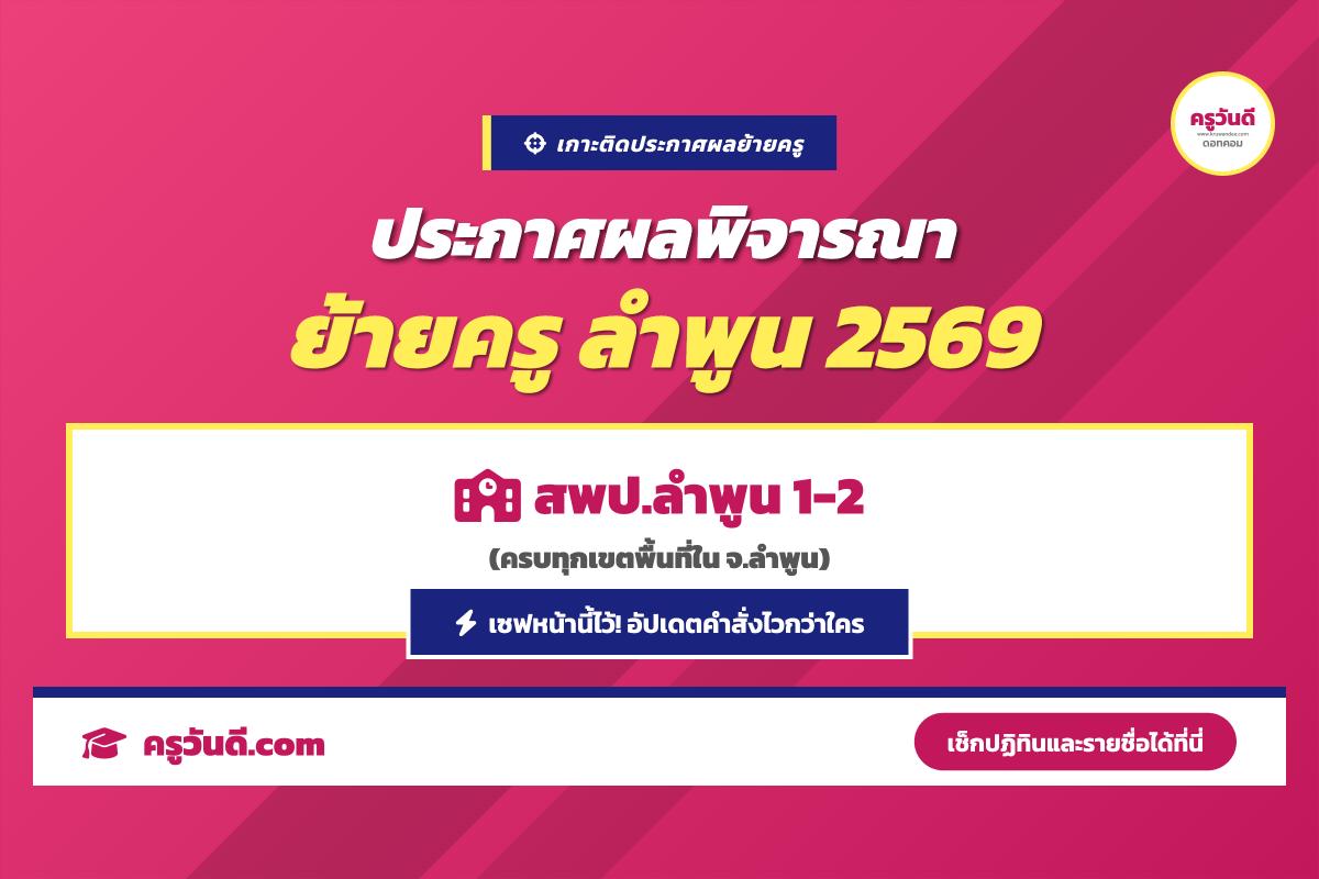 เกาะติด! ประกาศผลพิจารณาย้ายครู 2569 จังหวัดลำพูน (สพป.ลำพูน 1-2)