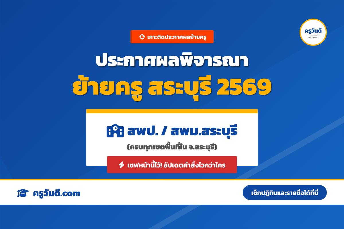 เกาะติด! ประกาศผลพิจารณาย้ายครู 2569 จังหวัดสระบุรี (สพป.สระบุรี เขต 1-2 / สพม.สระบุรี)
