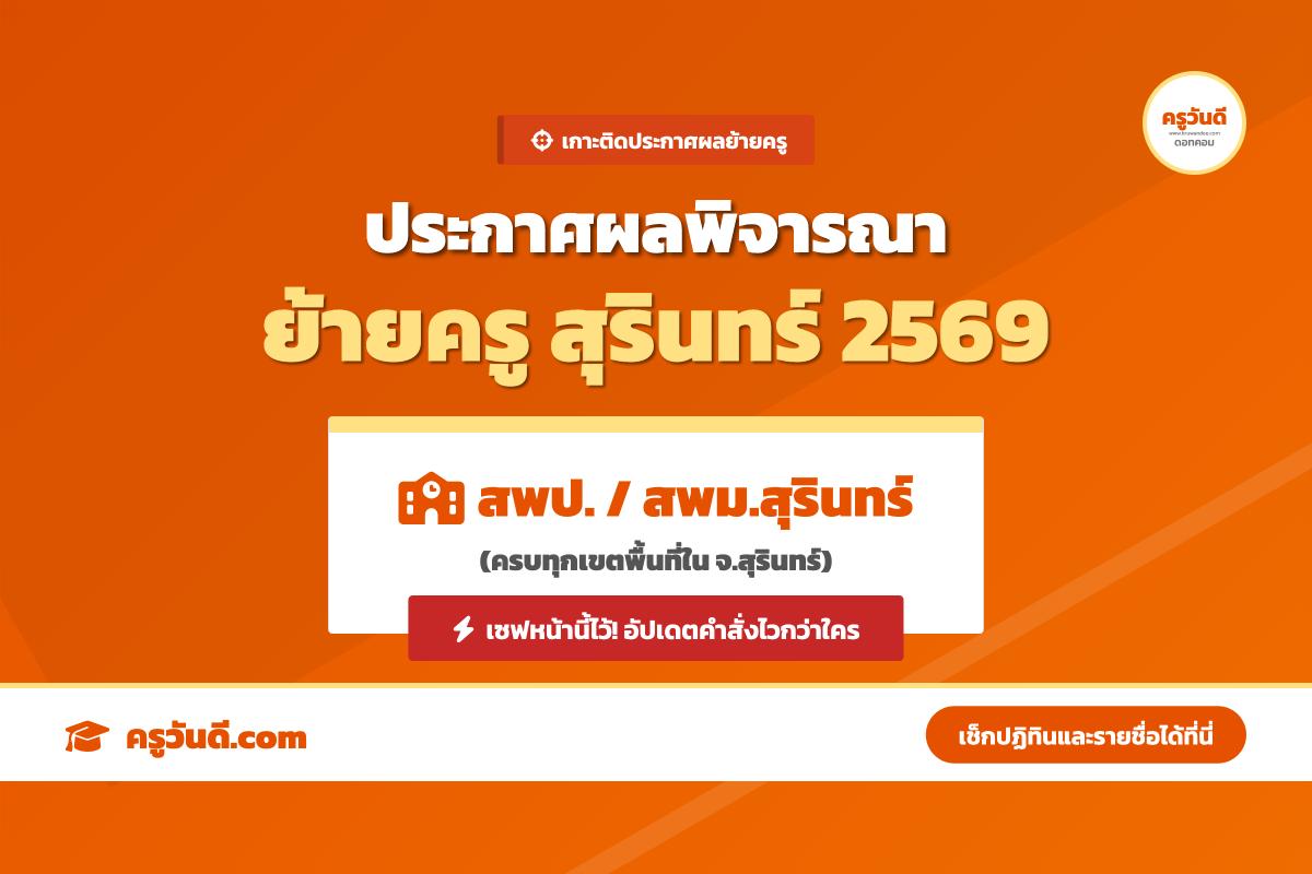 เกาะติด ประกาศผลพิจารณาย้ายครู 2569 จังหวัดสุรินทร์ (สพป. เขต 1-3 และ สพม.)