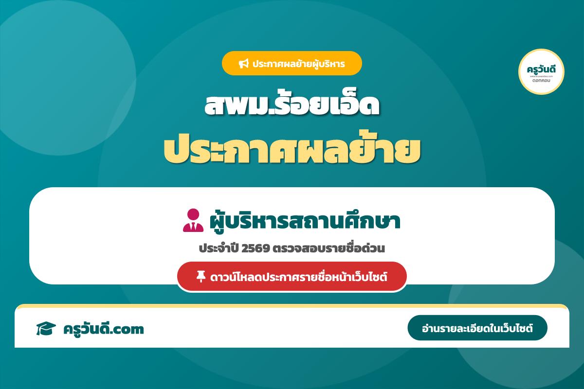 สพม.ร้อยเอ็ด ประกาศผลพิจารณาย้ายผู้บริหารสถานศึกษา ล่าสุด เช็กรายชื่อด่วน