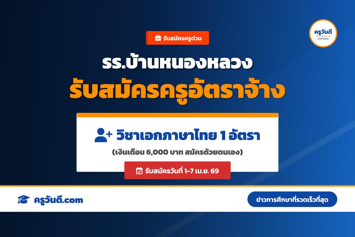 โรงเรียนบ้านหนองหลวง รับสมัครครูอัตราจ้าง วิชาเอกภาษาไทย วุฒิ ป.ตรี สมัคร 1-7 เม.ย. 69
