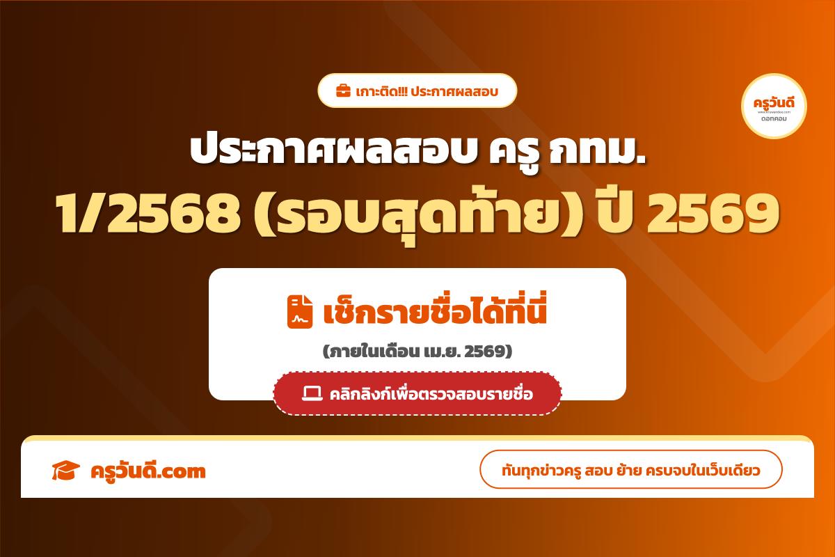 เกาะติด! ประกาศผลสอบครู กทม. 1/2568 (รอบสุดท้าย) เช็กรายชื่อผู้ขึ้นบัญชี 230 อัตรา ที่นี่