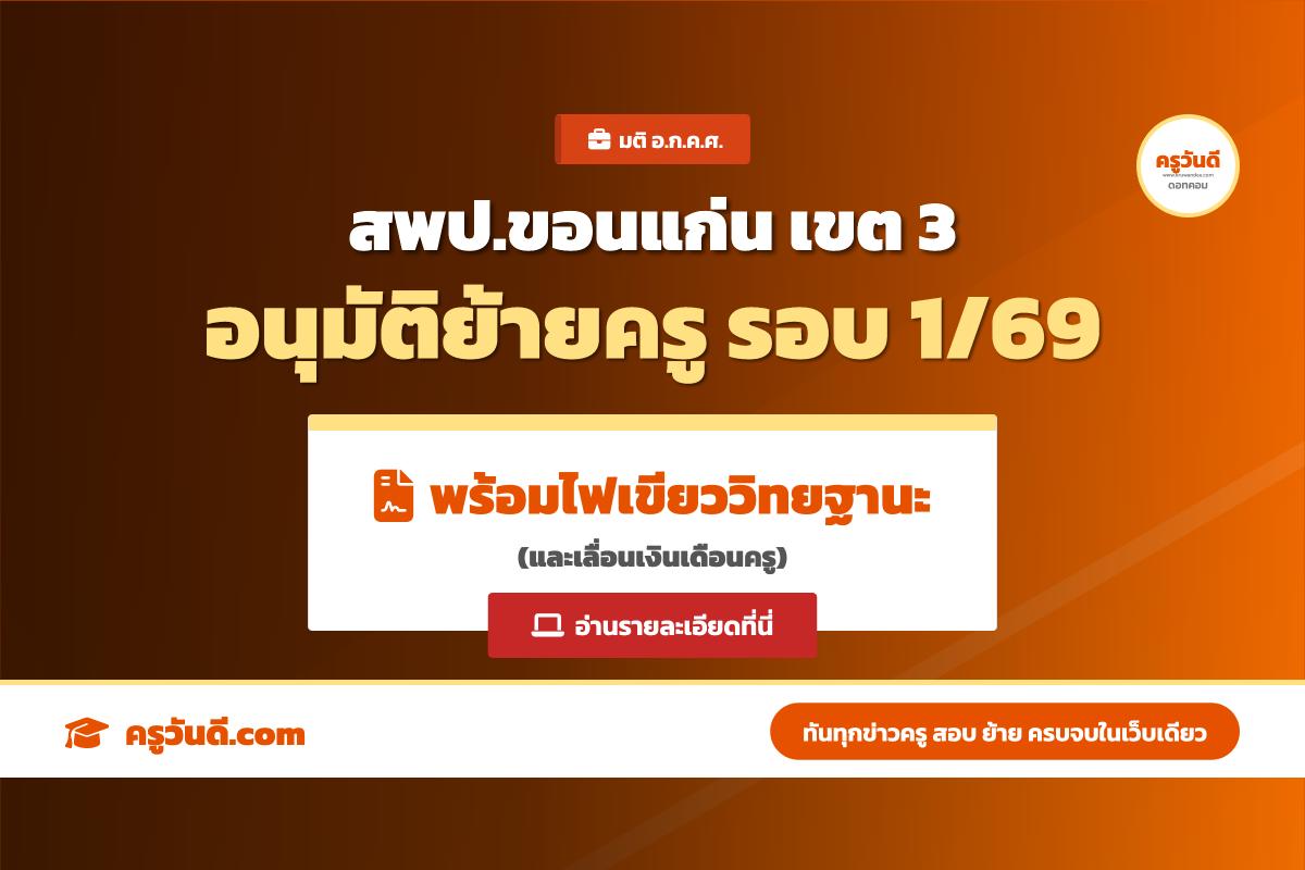ด่วน! มติ อ.ก.ค.ศ. สพป.ขอนแก่น เขต 3 ไฟเขียวอนุมัติย้ายครู รอบที่ 1/2569