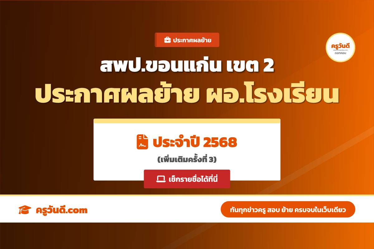 ประกาศผลการพิจารณาย้ายผู้บริหารสถานศึกษา ประจำปี พ.ศ. 2568 (เพิ่มเติมครั้งที่ 3) สพป.ขอนแก่น เขต 2