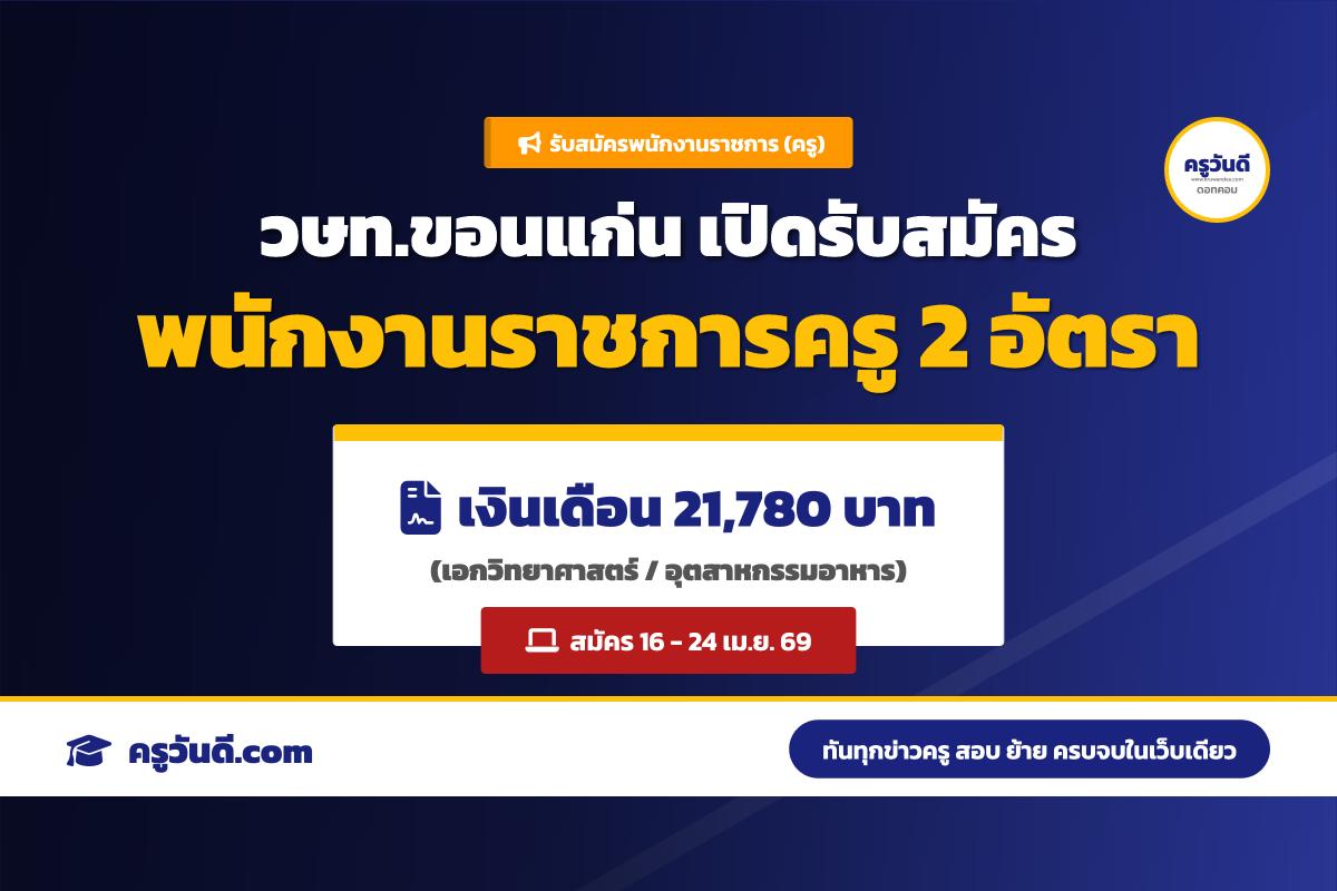เงินเดือน 21,780 บาท! วษท.ขอนแก่น เปิดสอบครู 2 อัตรา เอกอุตสาหกรรมอาหารไม่มีใบประกอบฯ ก็สอบได้ (สมัคร 16-24 เม.ย. 69)