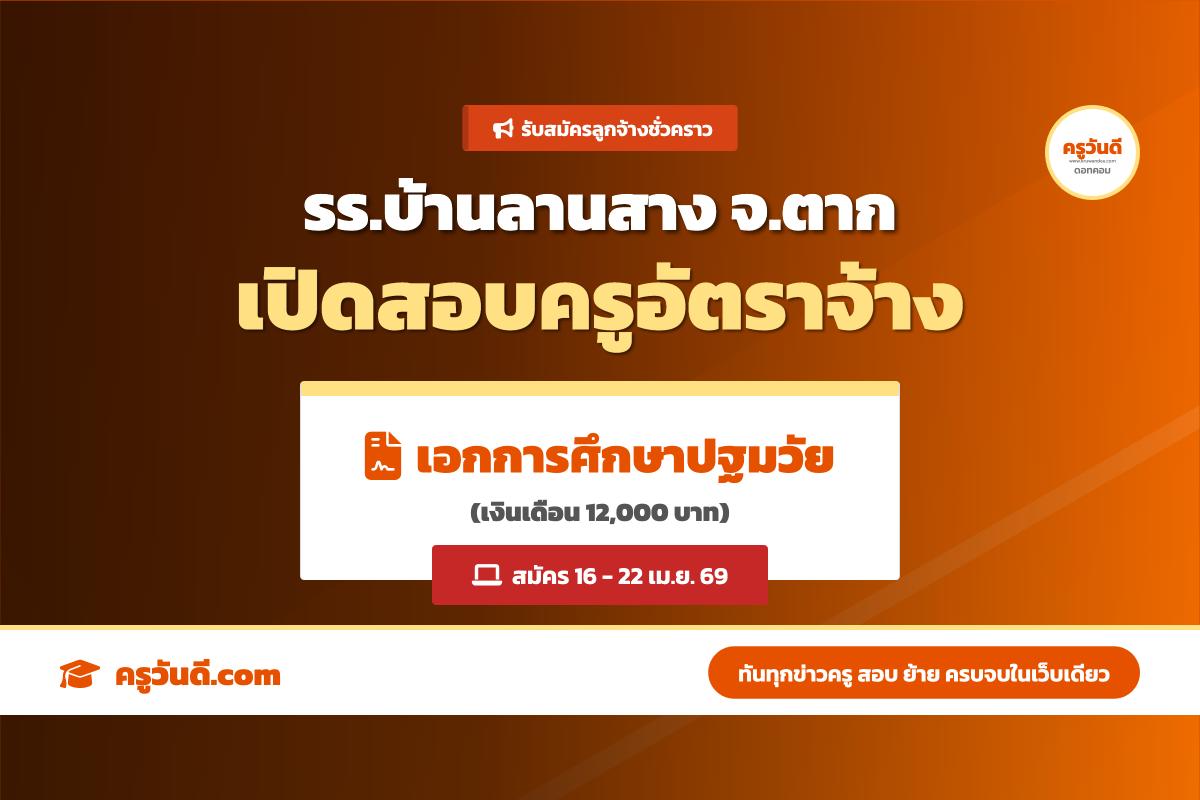 เงินเดือน 12,000.- รร.บ้านลานสาง จ.ตาก เปิดสอบครูปฐมวัย (สมัคร 16-22 เม.ย. 69)