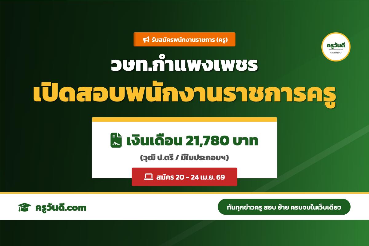 เงินเดือน 21,780 บาท! วษท.กำแพงเพชร เปิดสอบครูสังคม 1 อัตรา (สมัคร 20-24 เม.ย. 69)