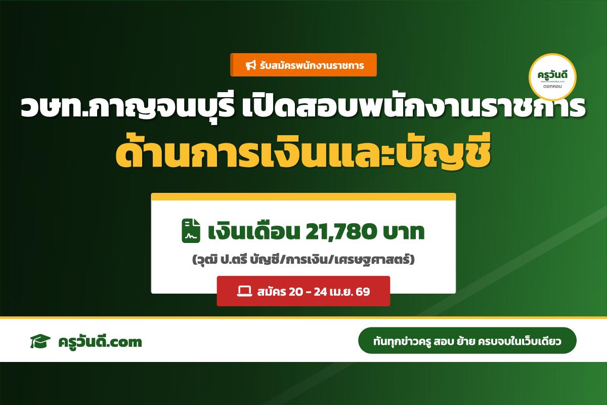 เงินเดือน 21,780 บาท! วษท.กาญจนบุรี เปิดสอบพนักงานราชการ ด้านการเงินและบัญชี (สมัคร 20-24 เม.ย. 69)