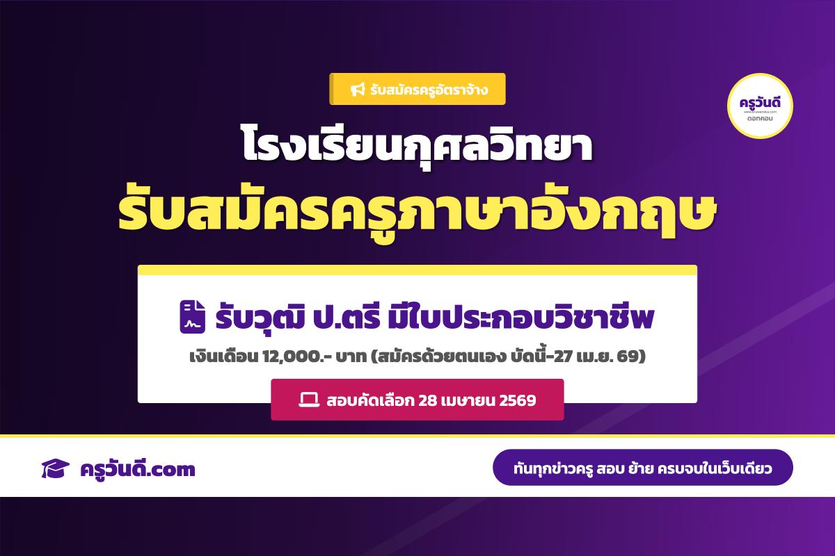 โรงเรียนกุศลวิทยา รับสมัครครูอัตราจ้าง วิชาเอกภาษาอังกฤษ เงินเดือน 12,000 บาท (บัดนี้-27 เม.ย. 69)