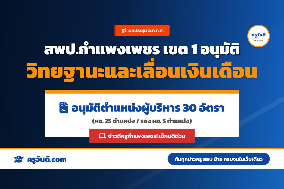 สวัสดีครับเพื่อนครูและผู้ติดตามเว็บไซต์ครูวันดีดอทคอมทุกท่าน วันนี้แอดมินนำข่าวสารความก้าวหน้าในวิชาชีพมาฝากกันครับ ล่าสุดกลุ่มบริหารงานบุคคล สำนักงานเขตพื้นที่การศึกษาประถมศึกษากำแพงเพชร เขต 1 ได้เปิดเผยผลการประชุม อ.ก.ค.ศ. เขตพื้นที่ฯ ครั้งที่ 6/2569 เมื่อวันจันทร์ที่ 20 เมษายน 2569 ที่ผ่านมา ซึ่งมีมติที่สำคัญหลายประการเลยครับ