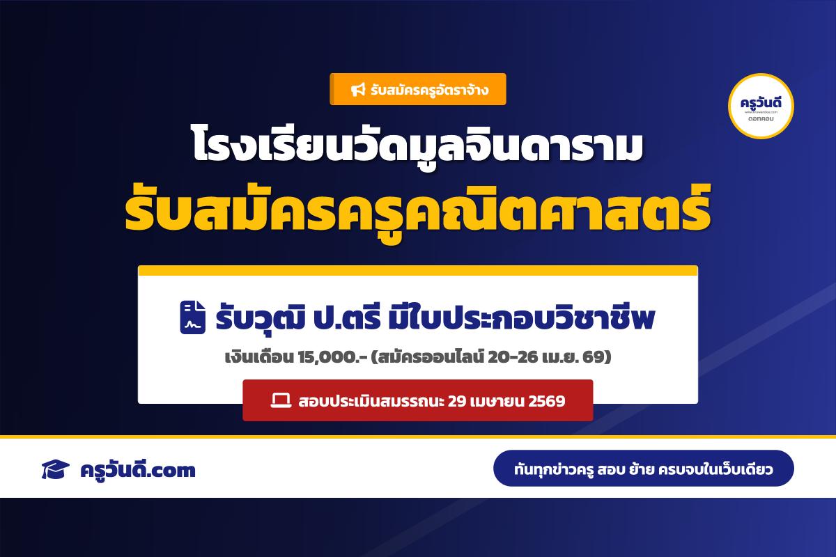 โรงเรียนวัดมูลจินดาราม รับสมัครครูอัตราจ้าง วิชาเอกคณิตศาสตร์ (20-26 เม.ย. 69)