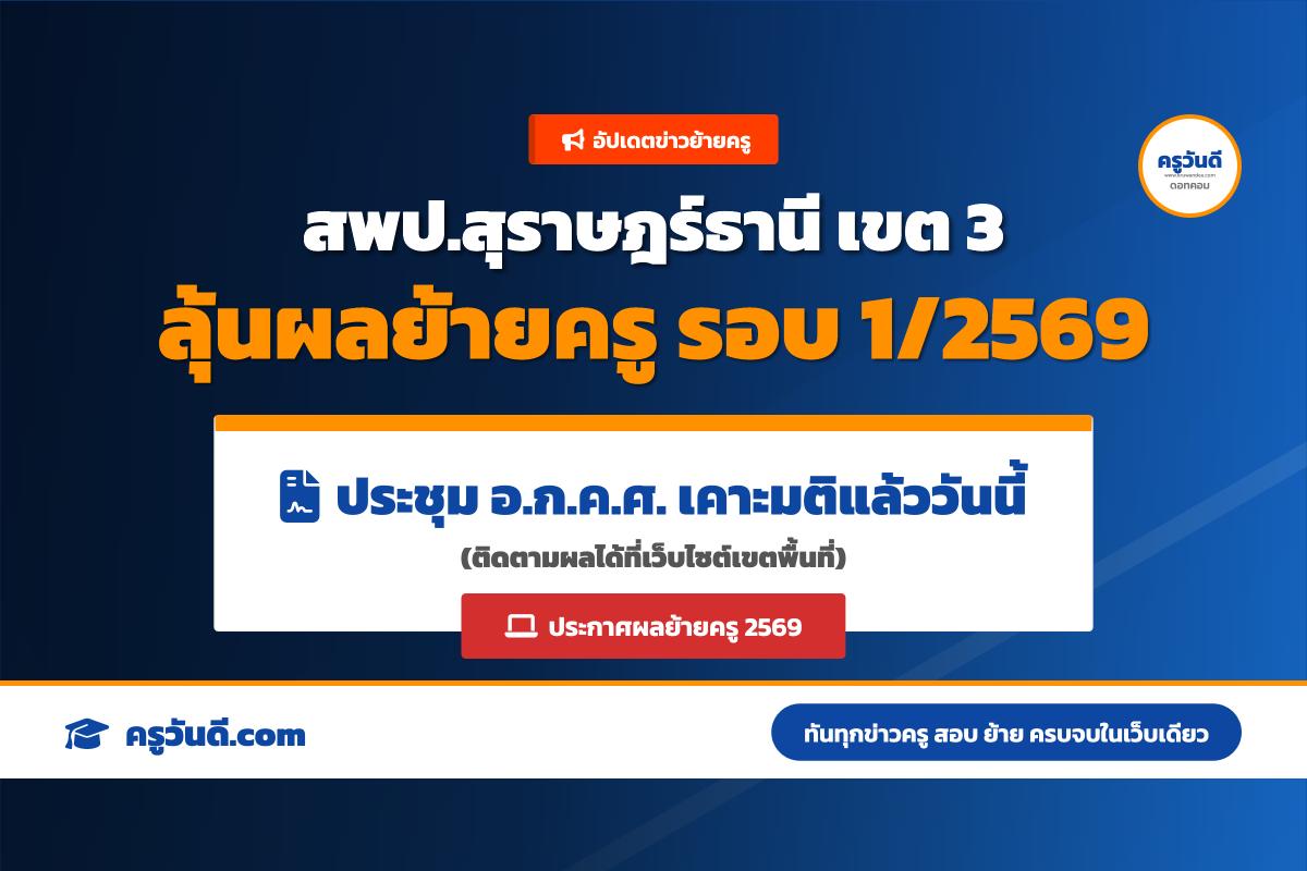 สพป.สุราษฎร์ธานี เขต 3 ประชุม อ.ก.ค.ศ. พิจารณามติอนุมัติย้ายครู รอบ 1 ปี 2569