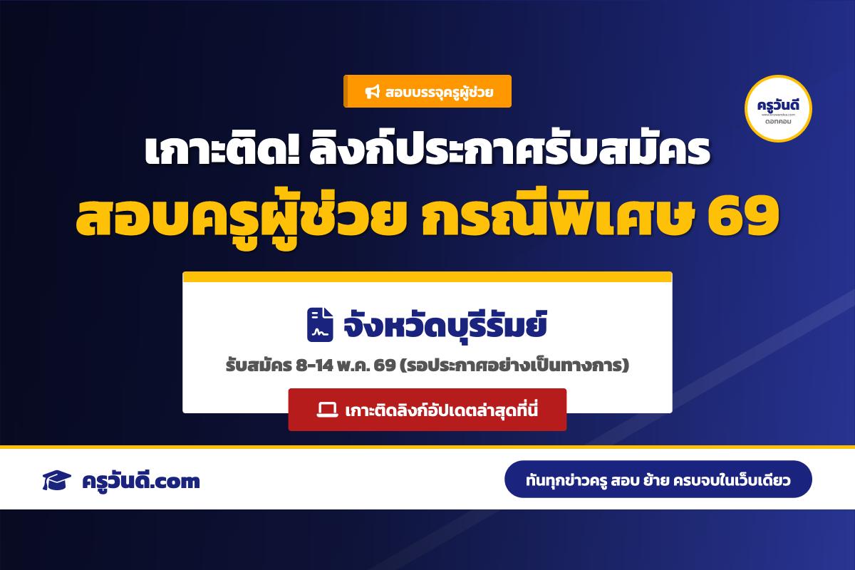 เกาะติด! ลิงก์ประกาศรับสมัครสอบครูผู้ช่วย กรณีพิเศษ จังหวัดบุรีรัมย์ ปี 2569 (รับสมัคร 8-14 พ.ค. 69)