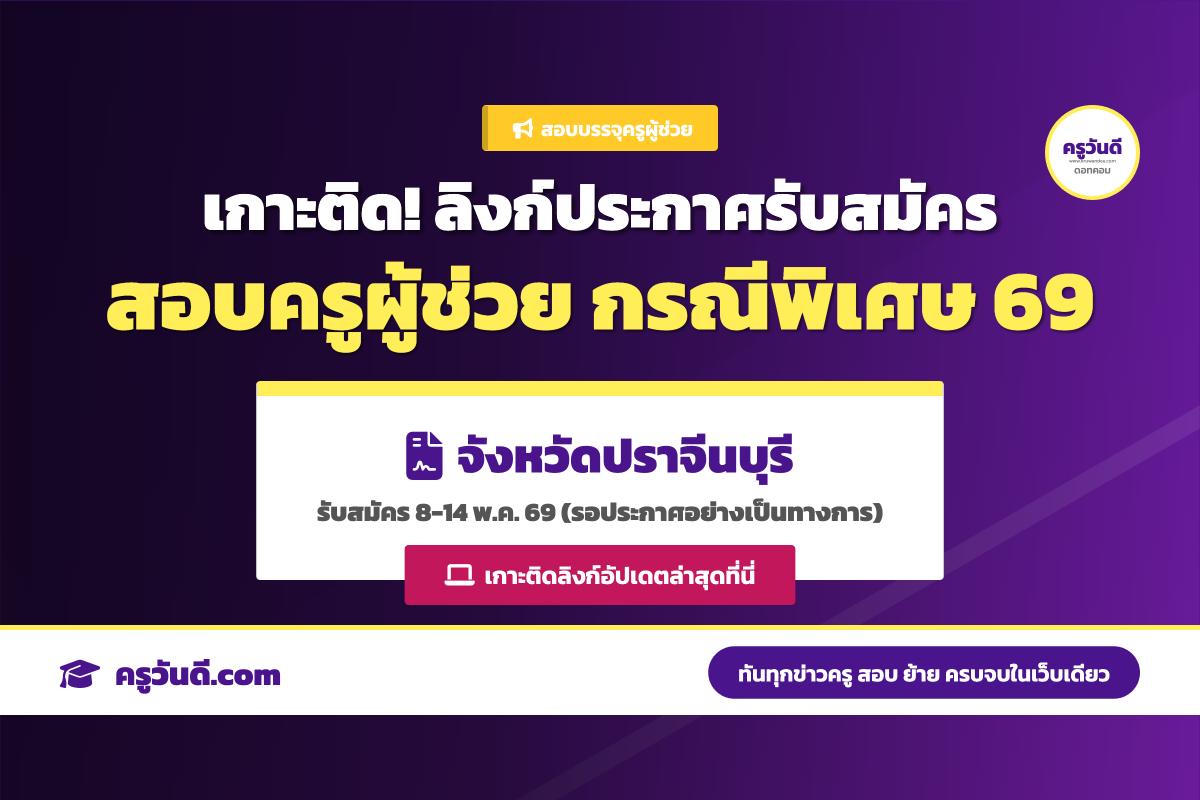 เกาะติด! ลิงก์ประกาศรับสมัครสอบครูผู้ช่วย กรณีพิเศษ จังหวัดปราจีนบุรี ปี 2569 (รับสมัคร 8-14 พ.ค. 69)