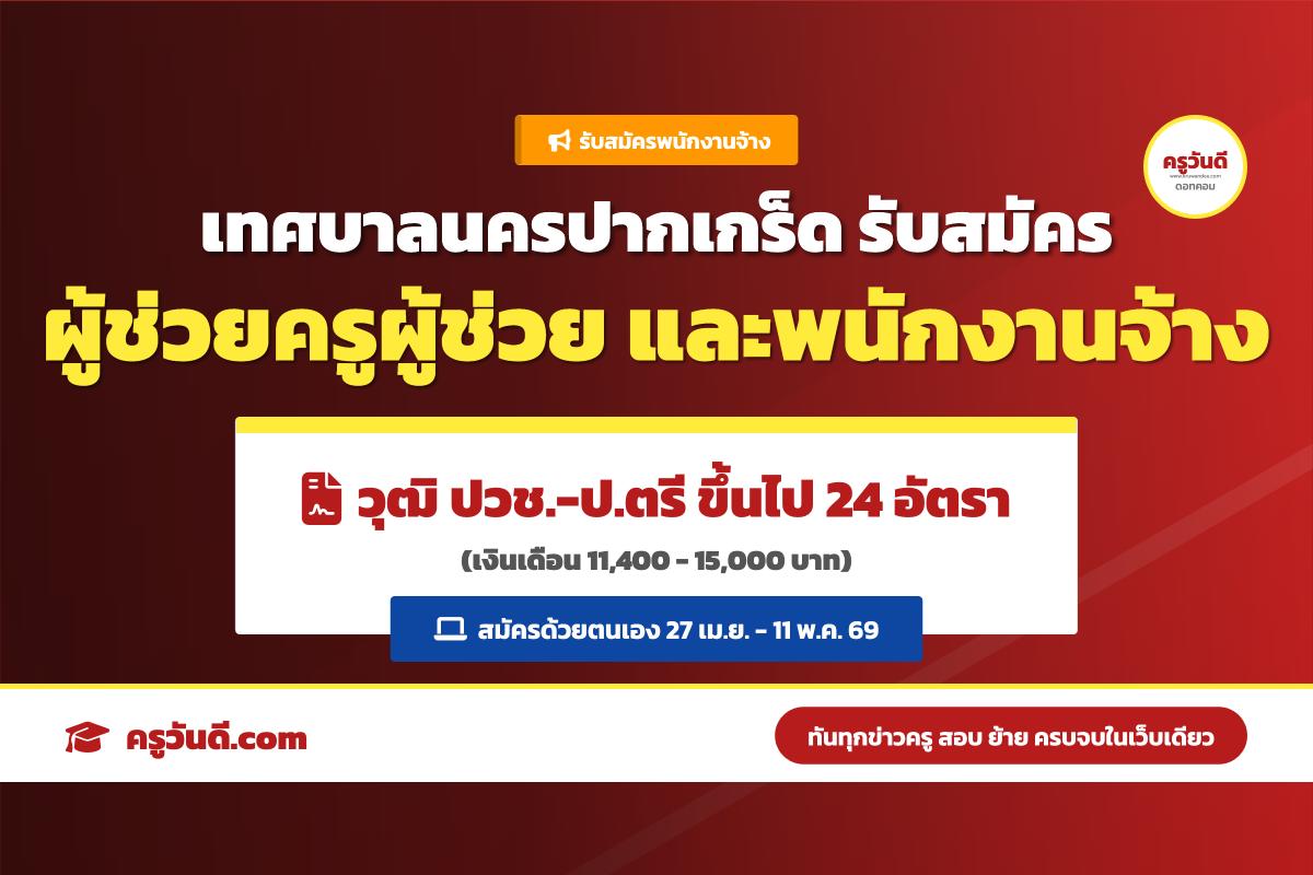 - การประกาศรายชื่อ: 29 พฤษภาคม 2569 ทางเว็บไซต์เทศบาลนครปากเกร็ด