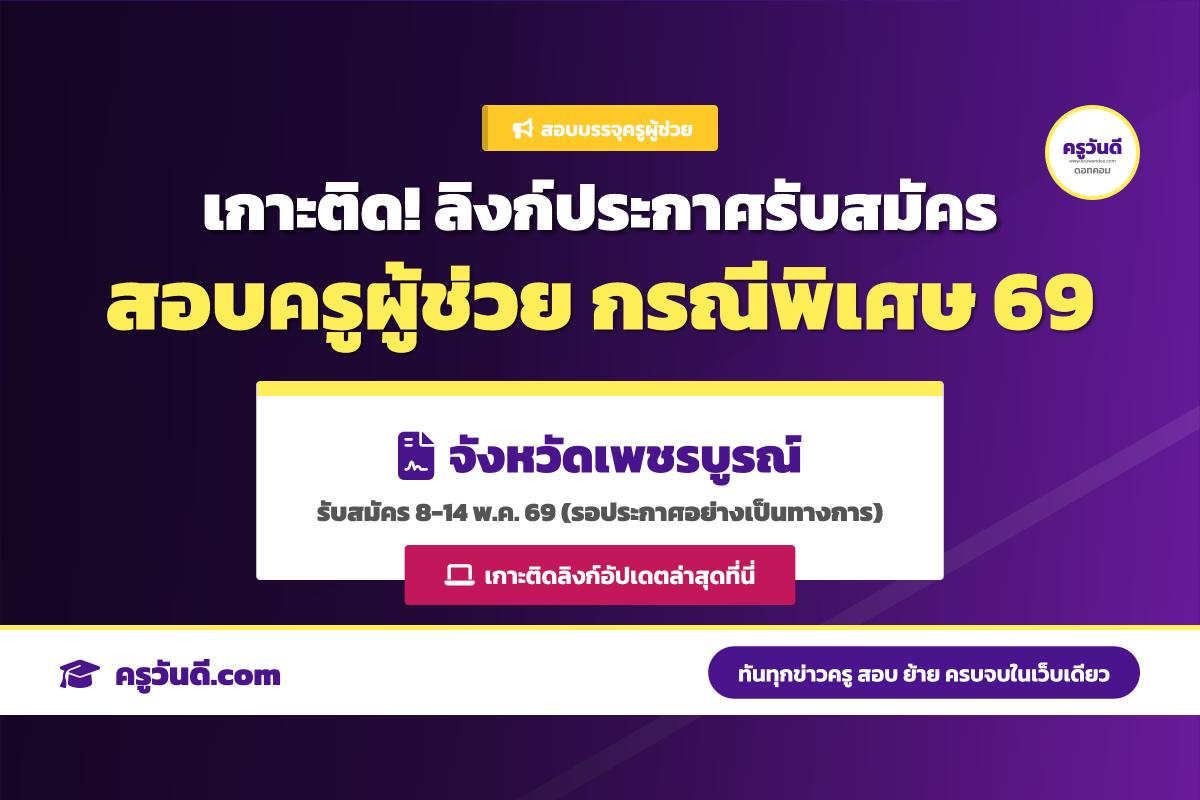 เกาะติด! ลิงก์ประกาศรับสมัครสอบครูผู้ช่วย กรณีพิเศษ จังหวัดเพชรบูรณ์ ปี 2569 (รับสมัคร 8-14 พ.ค. 69)