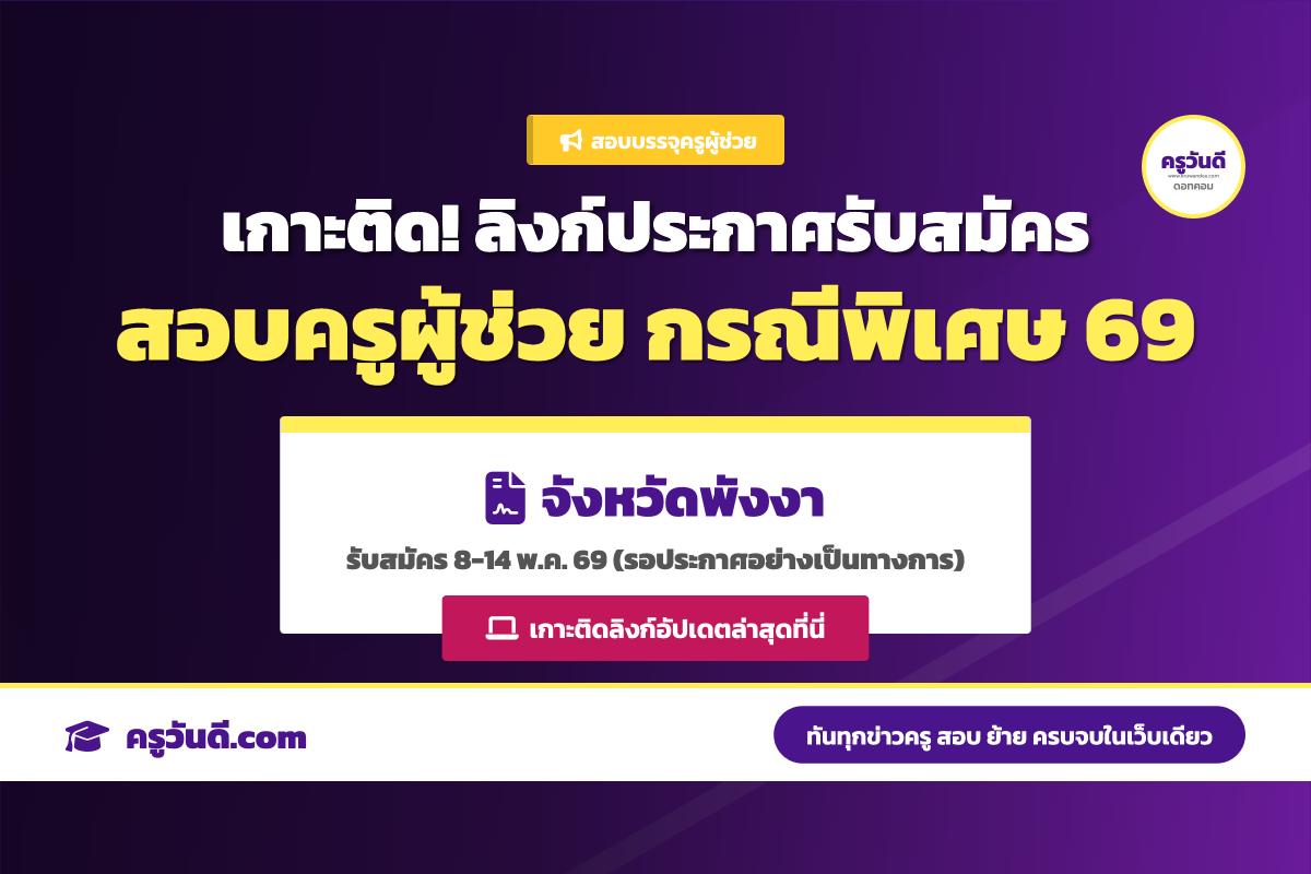 เกาะติด! ลิงก์ประกาศรับสมัครสอบครูผู้ช่วย กรณีพิเศษ จังหวัดพังงา ปี 2569 (รับสมัคร 8-14 พ.ค. 69)