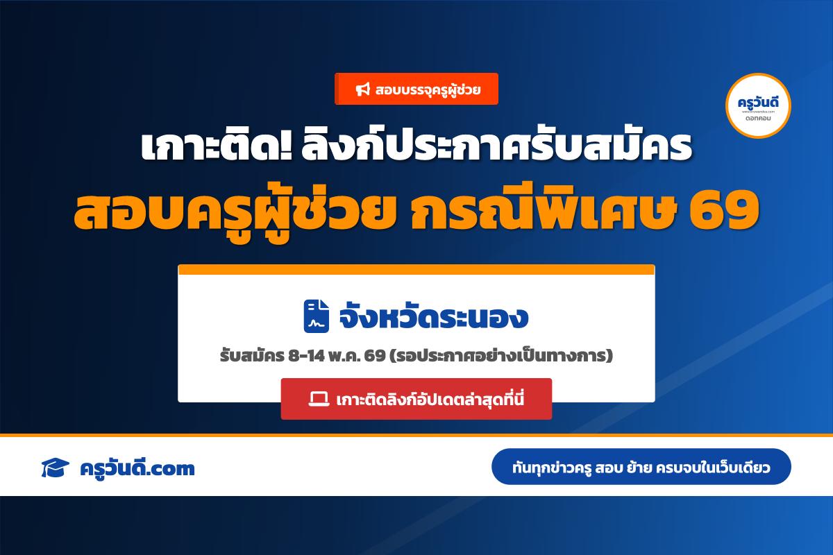 เกาะติด! ลิงก์ประกาศรับสมัครสอบครูผู้ช่วย กรณีพิเศษ จังหวัดระนอง ปี 2569 (รับสมัคร 8-14 พ.ค. 69)