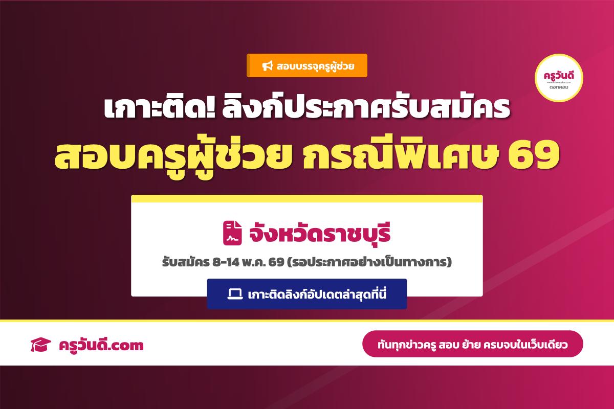 เกาะติด! ลิงก์ประกาศรับสมัครสอบครูผู้ช่วย กรณีพิเศษ จังหวัดราชบุรี ปี 2569 (รับสมัคร 8-14 พ.ค. 69)
