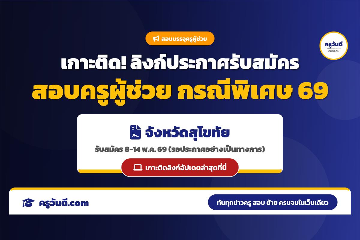 เกาะติด! ลิงก์ประกาศรับสมัครสอบครูผู้ช่วย กรณีพิเศษ จังหวัดสุโขทัย ปี 2569 (รับสมัคร 8-14 พ.ค. 69)