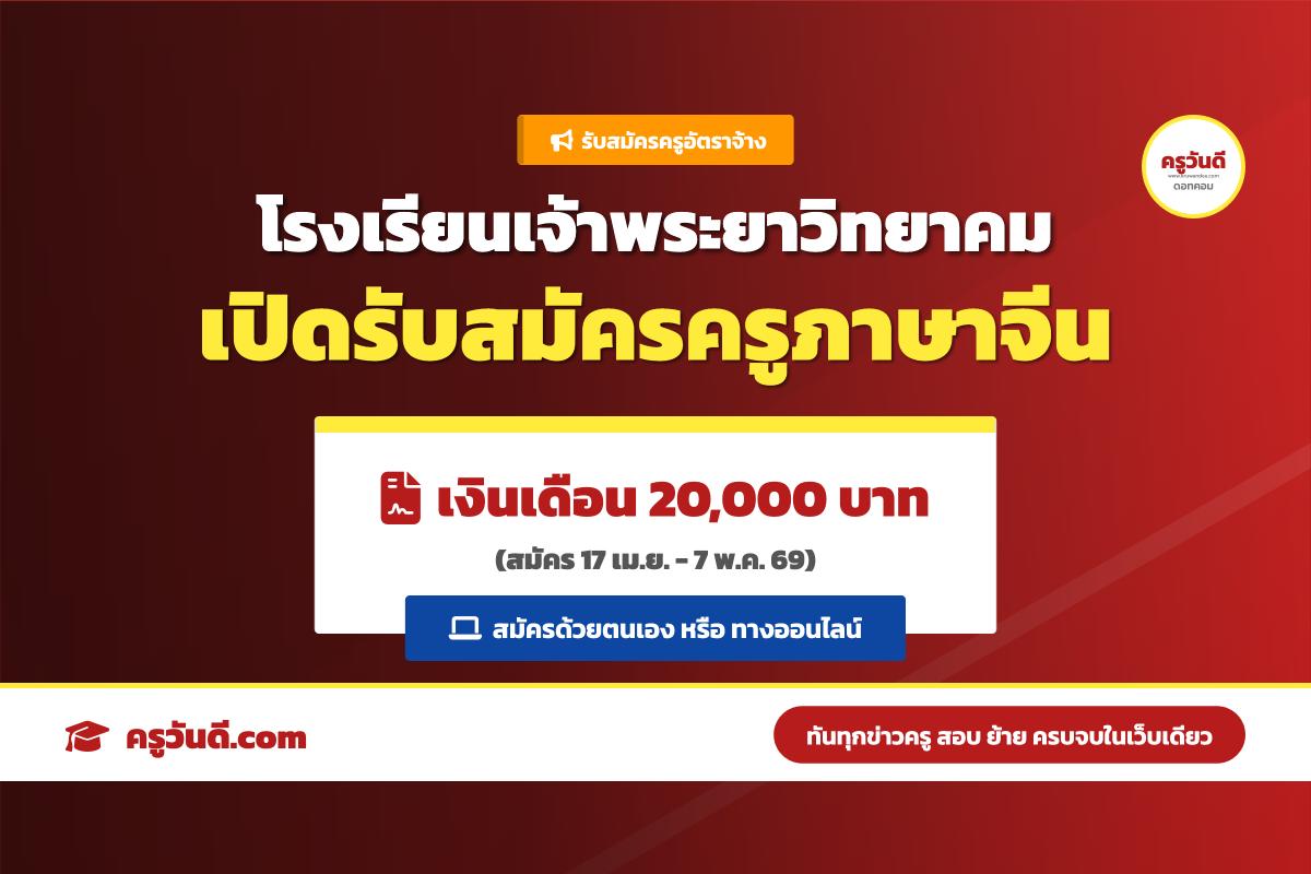 เงินเดือน 20,000.- รร.เจ้าพระยาวิทยาคม เปิดสอบครูอัตราจ้าง วิชาภาษาจีน (สมัคร 17 เม.ย.-7 พ.ค. 69)