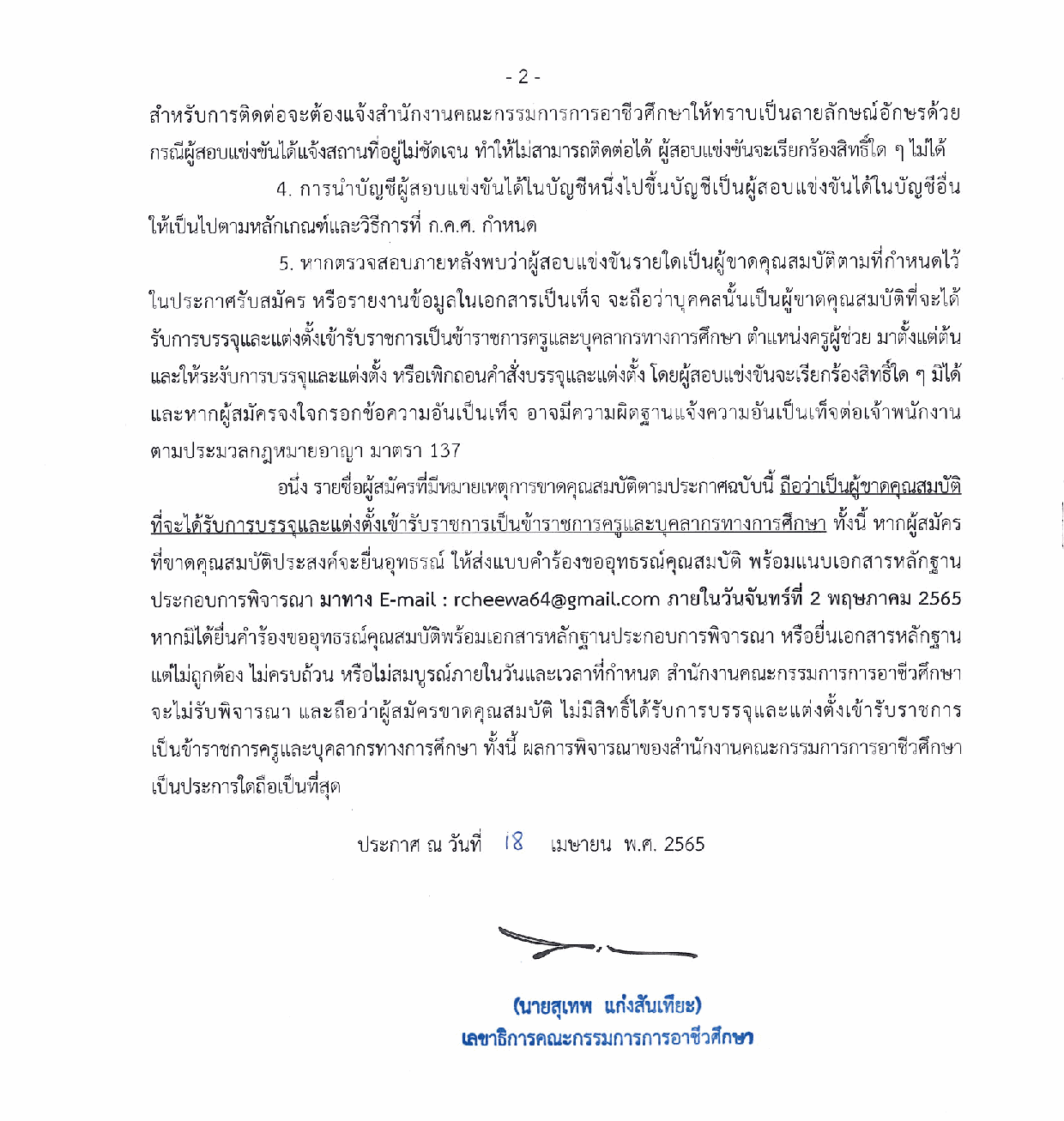 3. เอกสารแนบท้ายประกาศส่วนที่ 3 : หมายเหตุการขาดคุณสมบัติ - คลิกที่นี่ -