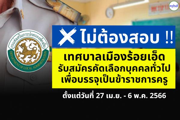 เทศบาลเมืองร้อยเอ็ด รับสมัครคัดเลือกบรรจุครูผู้ช่วย โดยไม่จำเป็นต้องสอบแข่งขัน