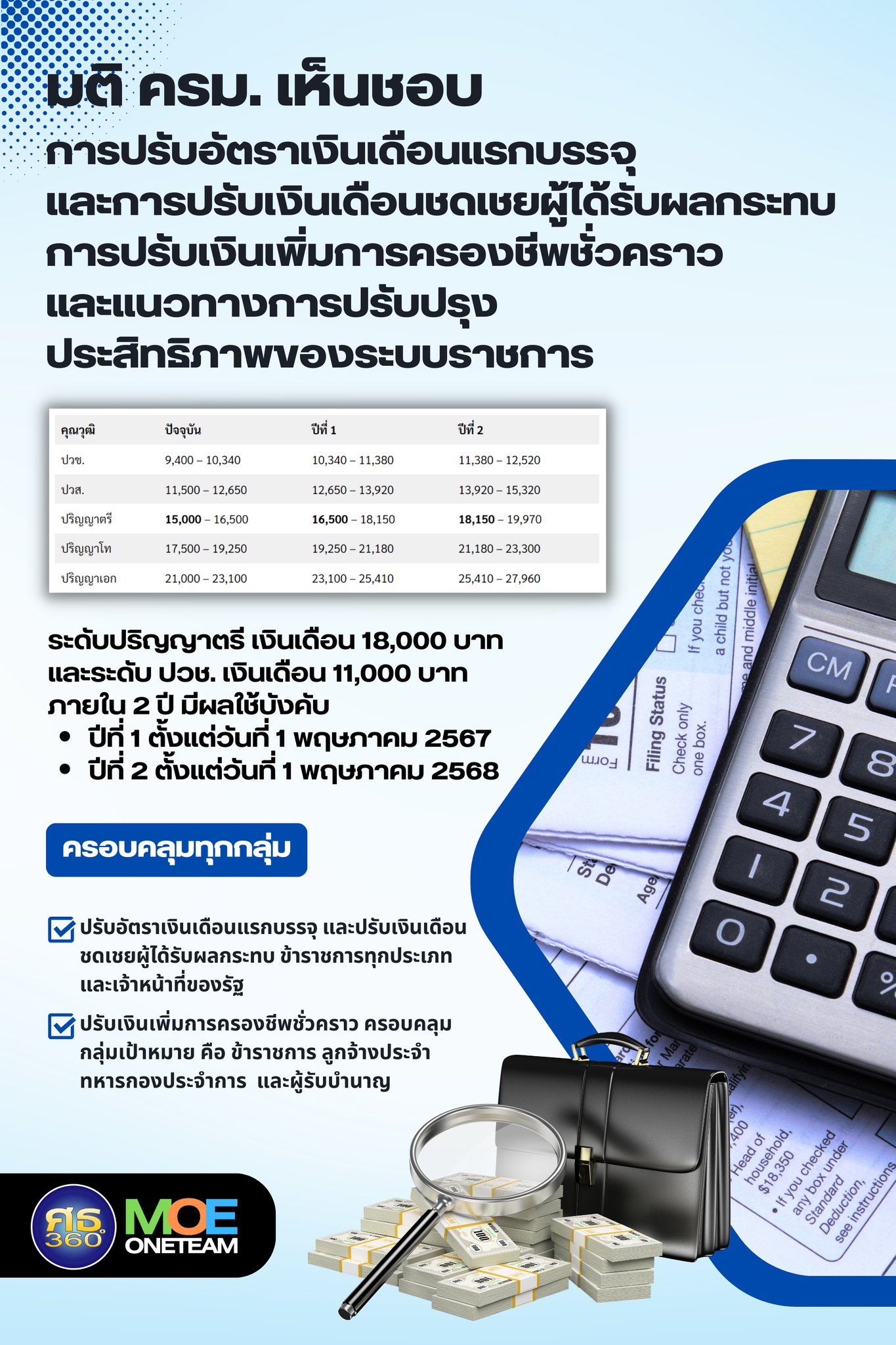 เปิดรายละเอียด ! ครม.เห็นชอบปรับอัตราเงินเดือนแรกบรรจุและปรับเงินเดือนชดเชยผู้ได้รับผลกระทบ ครอบคลุมทุกกลุ่ม