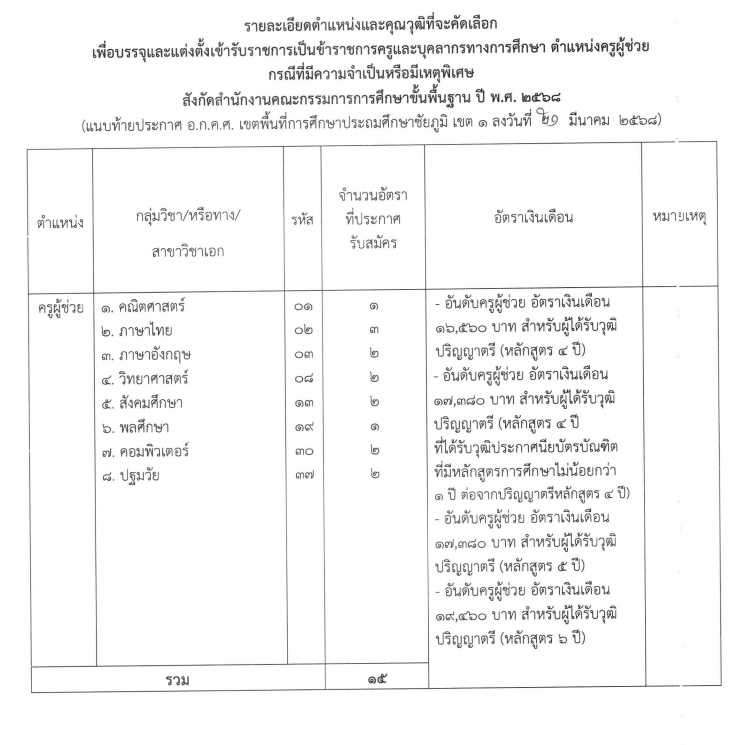 08 ธ.ค. 2568สพป.กำแพงเพชร เขต 1 รับสมัครพนักงานราชการครู 7 อัตรา เงินเดือน 21,780 บาท 08 ธ.ค. 2568ด่วนที่สุด! ก.ค.ศ. สั่งเบรกย้ายครูผ่านระบบ TRS ชั่วคราว (เริ่ม 1 ม.ค. 69) ให้กลับไปใช้เกณฑ์ ว18 พร้อมสั่งเขตฯ ส่งปฏิทินย้ายด่วน ภายใน 19 ธ.ค.นี้! 08 ธ.ค. 2568โรงเรียนเพชรพิทยาคม รับสมัครลูกจ้างชั่วคราว 2 อัตรา (พัสดุ/ช่างโยธา) สมัคร 15-20 ธ.ค. 68 08 ธ.ค. 2568สพป.ศรีสะเกษ เขต 2 เรียกบรรจุครูผู้ช่วย 9 อัตรา (ขอใช้บัญชี สพป.ศรีสะเกษ เขต 1) รายงานตัว 11 ธ.ค.นี้ 08 ธ.ค. 2568โรงเรียนบ้านโป่งตาเบ้า รับสมัครครูวิกฤต วิชาเอกสังคมศึกษา เงินเดือน 15,000 บาท 07 ธ.ค. 2568เตรียมพร้อม! ประกาศผลสอบท้องถิ่น ภาค ก และ ภาค ข ปี 2568 รวมลิงก์เช็กรายชื่อผู้มีสิทธิสอบภาค ค ไว้ที่นี่ 07 ธ.ค. 2568สพป.อุดรธานี เขต 3 รับสมัครพนักงานราชการครู 8 อัตรา เงินเดือน 21,780 บาท 06 ธ.ค. 2568สพป.นครราชสีมา เขต 4 รับสมัครพนักงานราชการครู 10 อัตรา เงินเดือน 21,780 บาท 05 ธ.ค. 2568โรงเรียนวัดพระมหาธาตุ รับสมัครครูอัตราจ้าง วิชาเอกภาษาอังกฤษ เงินเดือน 10,000 บาท 05 ธ.ค. 2568กองทุนเงินให้กู้ยืมเพื่อการศึกษา (กยศ.) รับสมัครเจ้าหน้าที่บริหารงานทั่วไป เงินเดือน 18,750 บาท วุฒิ ป.ตรี ทุกสาขา สมัครทางอีเมลได้ ถึง 17 ธ.ค. 68
