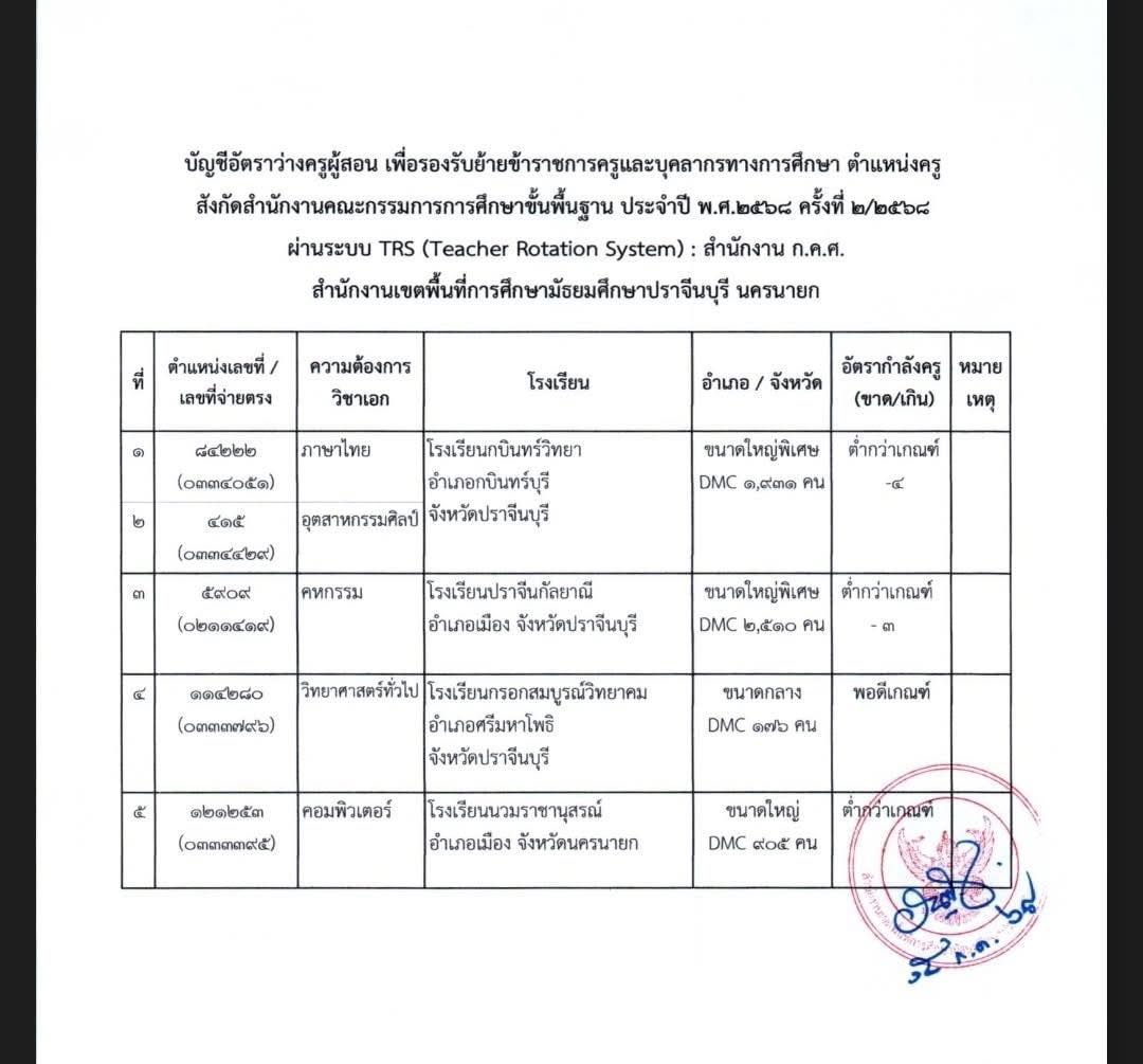 (( รวมประกาศ )) ตำแหน่งว่างเพื่อย้ายข้าราชการครู ผ่านระบบ TRS ประจำปี พ.ศ. 2568 (ครั้งที่ 2) ครอบคลุมทุกเขตพื้นที่ทั่วประเทศ
