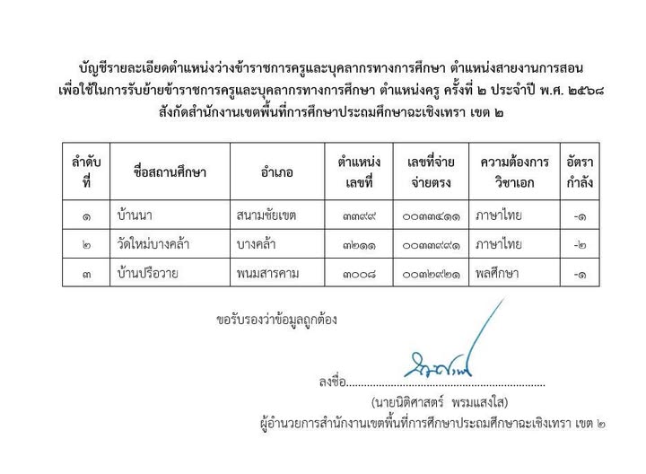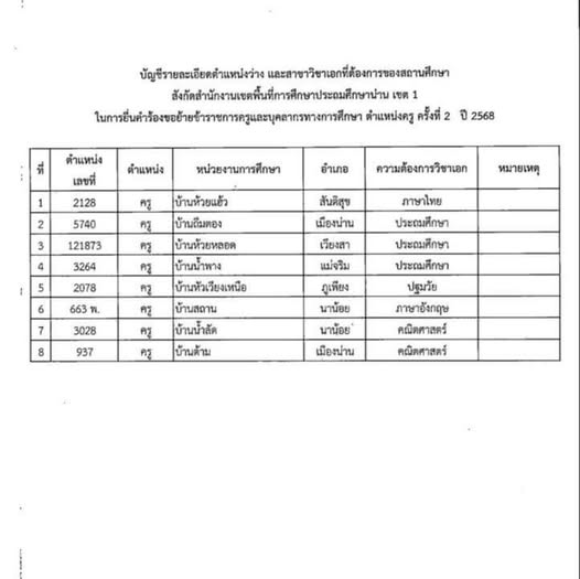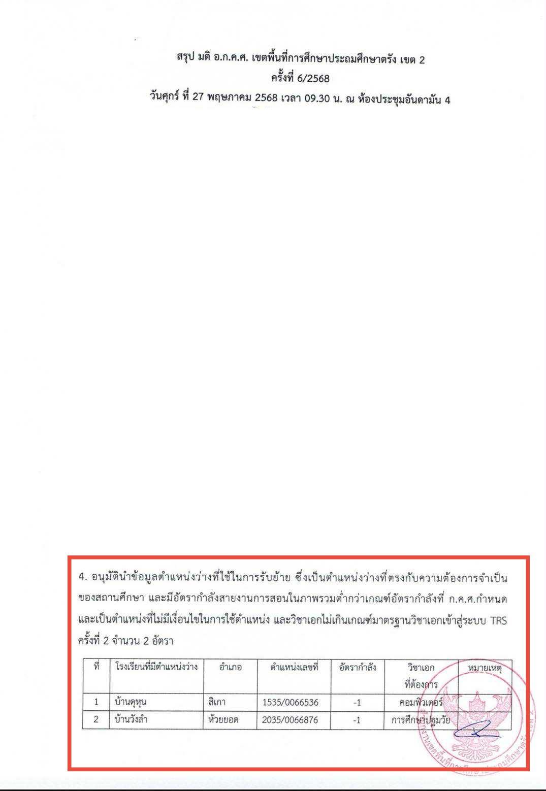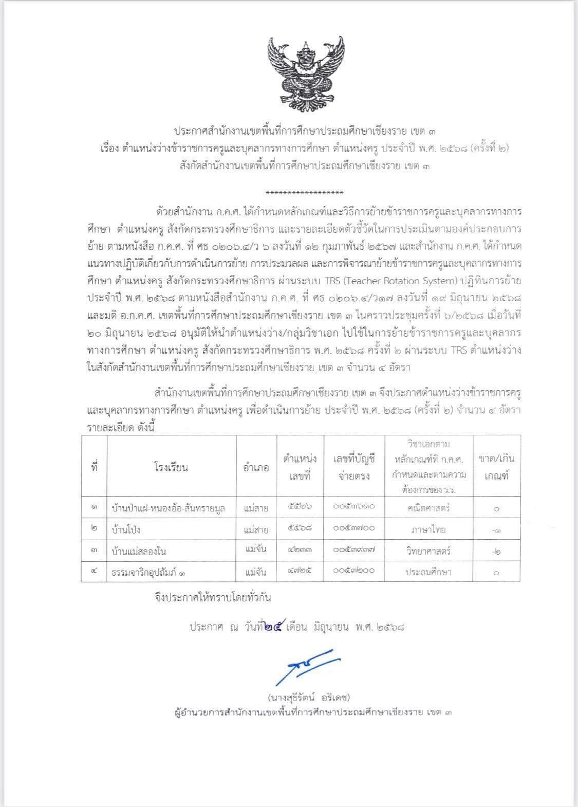 - ตรวจสอบคำร้องขอย้าย : ภายในวันที่ 4 กันยายน 2568