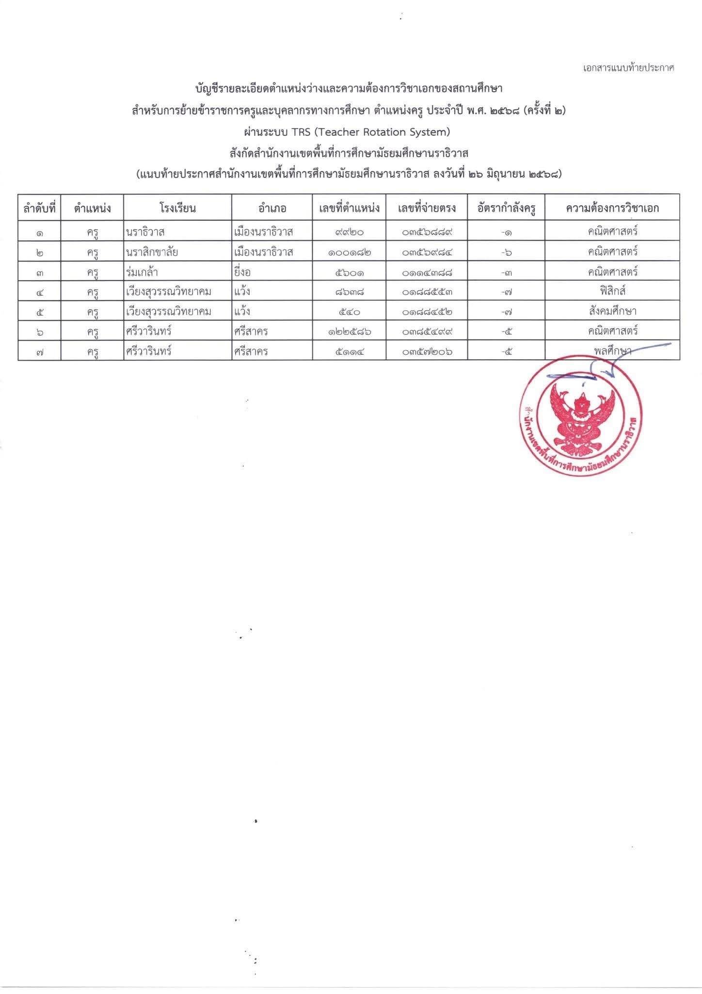 ผ่านระบบ TRS ประจำปี พ.ศ. 2568 (ครั้งที่ 2) ครอบคลุมทุกเขตพื้นที่ทั่วประเทศ