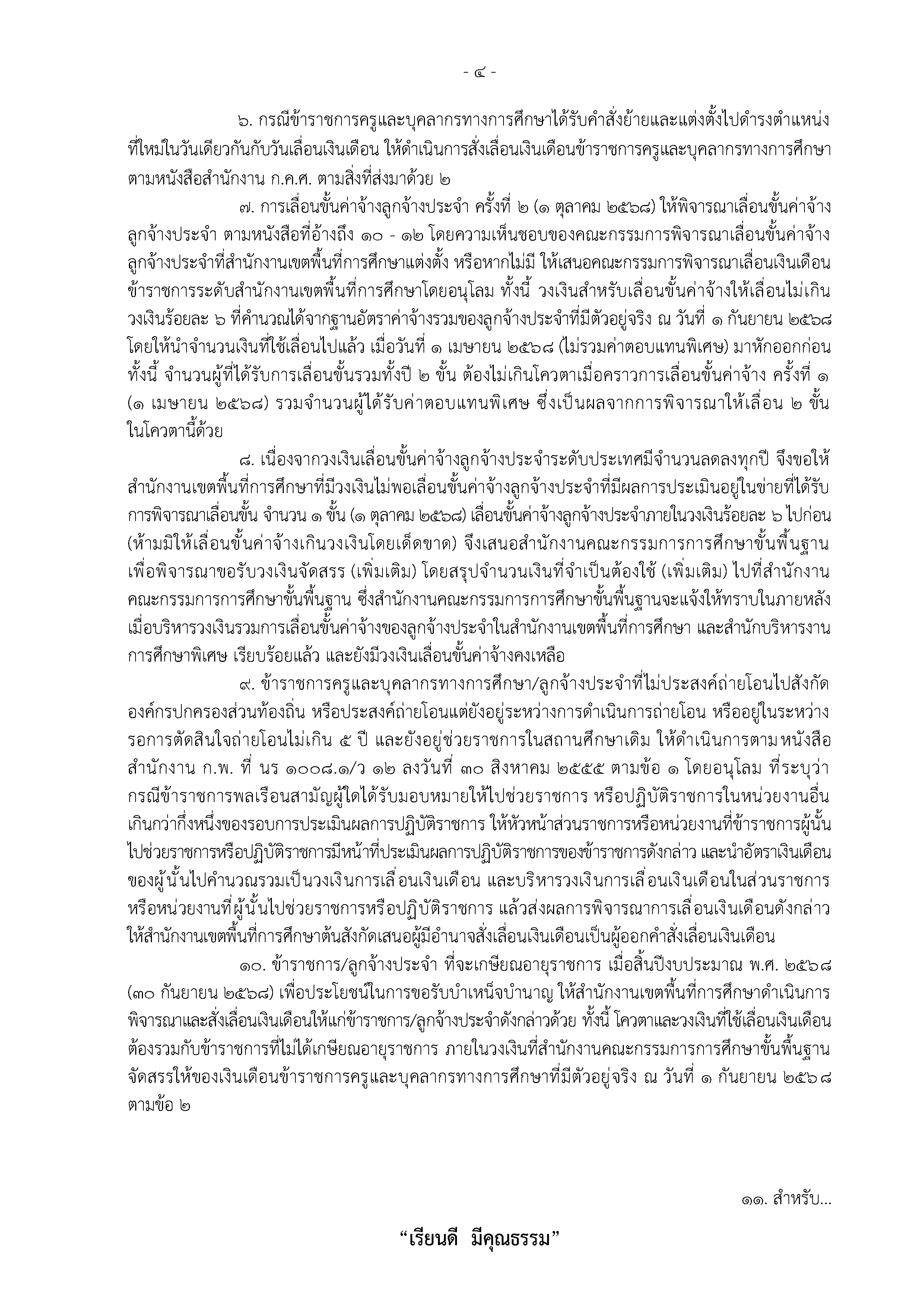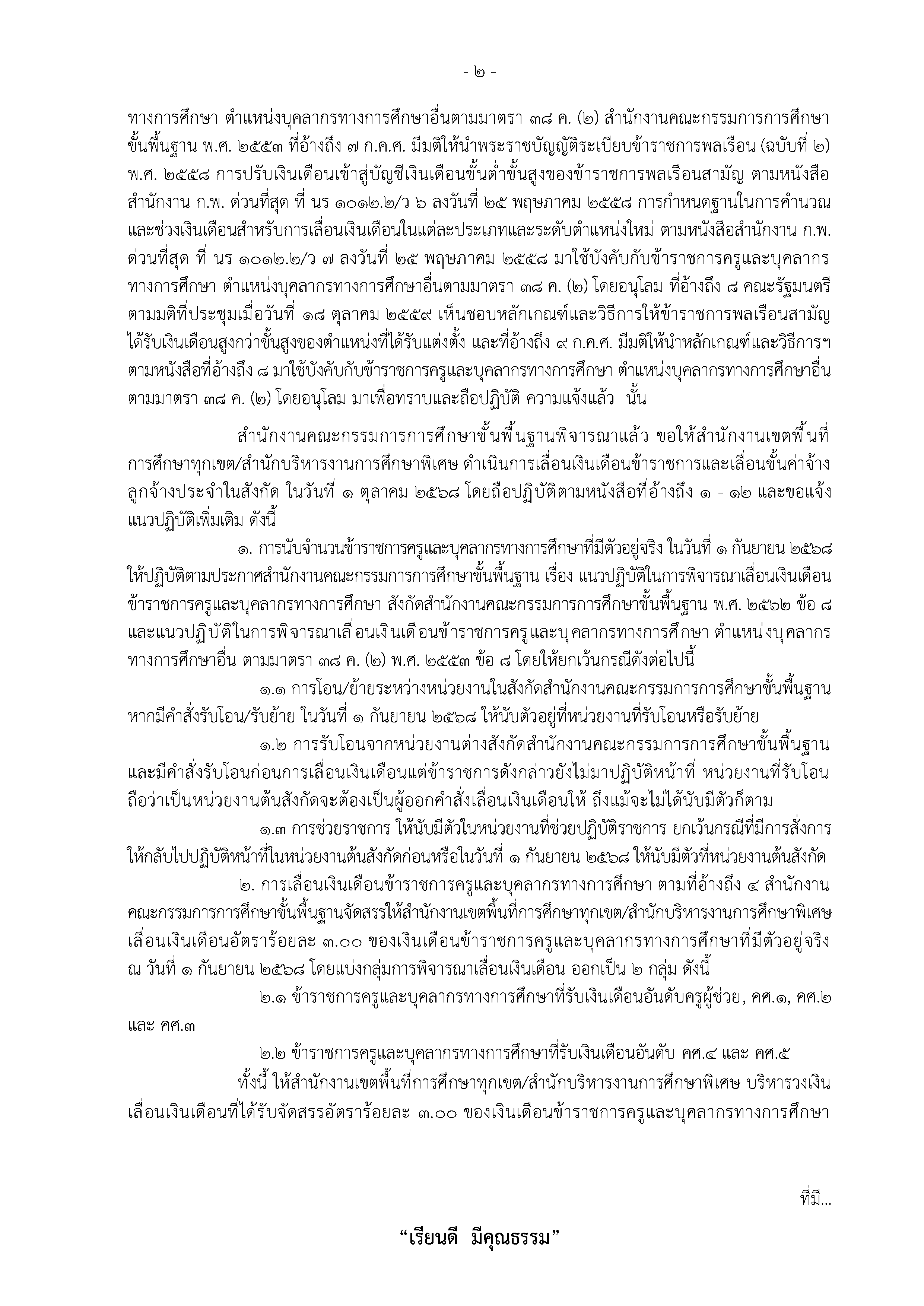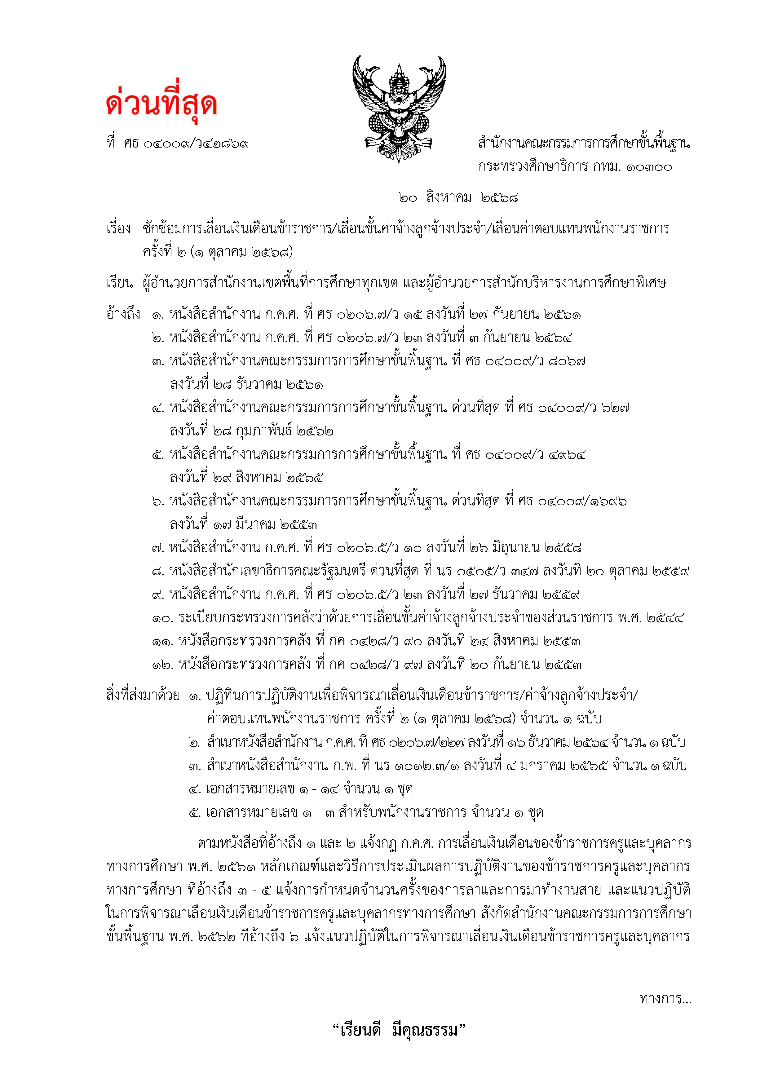 ด่วนที่สุด: ซักซ้อมการเลื่อนเงินเดือน/เลื่อนขั้นค่าจ้าง/เลื่อนค่าตอบแทน ครั้งที่ 2 (1 ตุลาคม 2568) (ที่ ศธ 04009/ว42869 ลงวันที่ 20 สิงหาคม 2568)