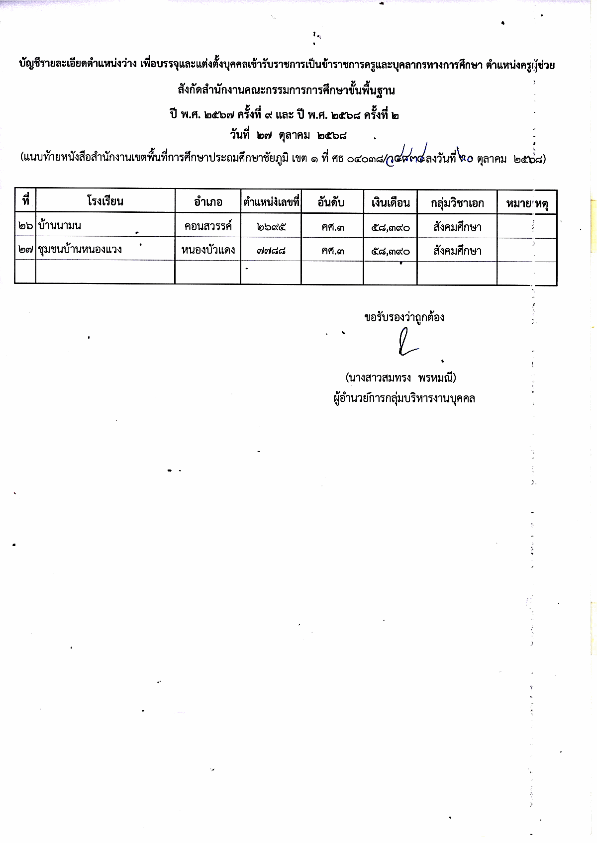 สพป.ชัยภูมิ เขต 1 เรียกบรรจุครูผู้ช่วย 27 อัตรา รายงานตัว 27 ตุลาคม 2568
