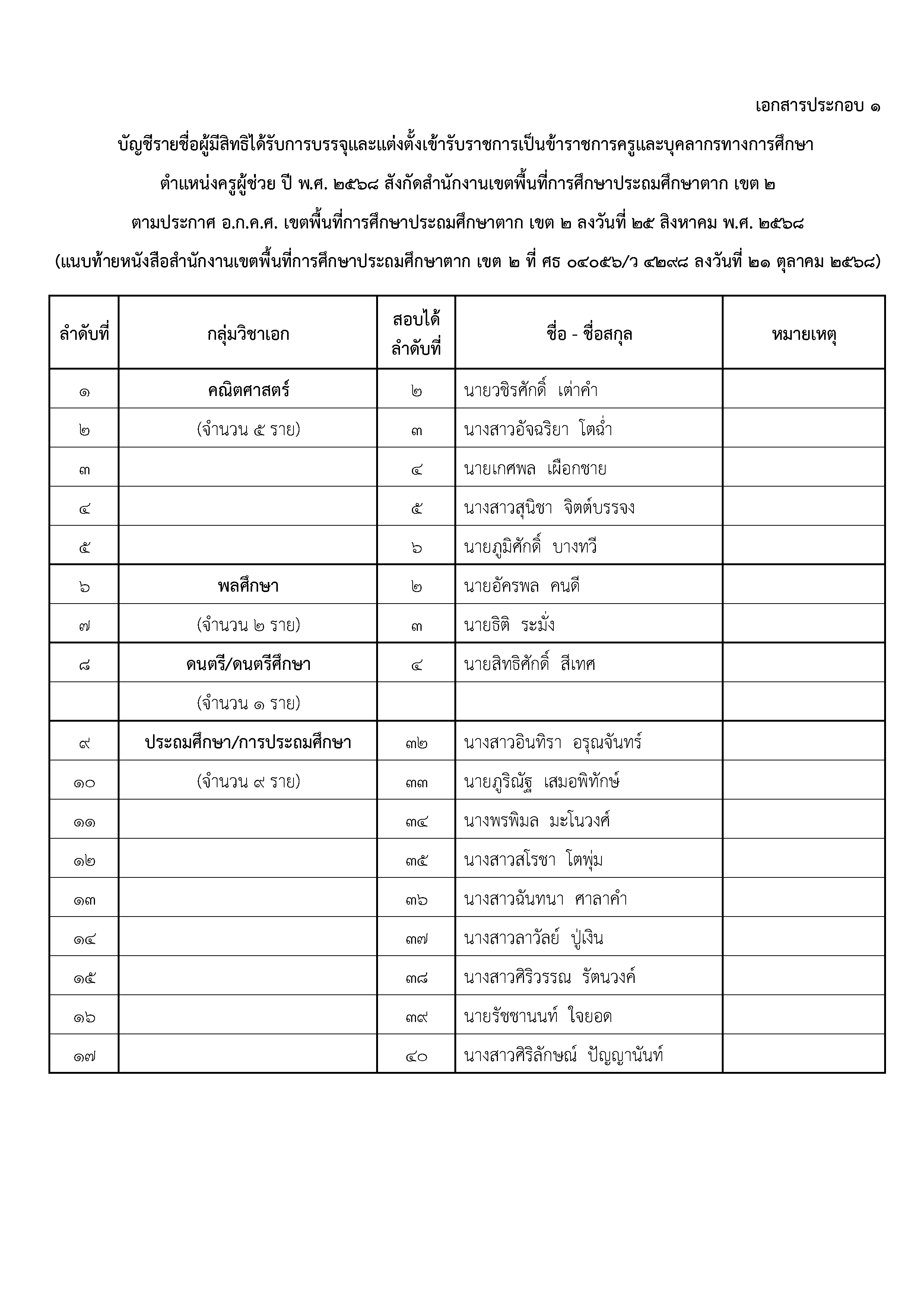 สำนักงานเขตพื้นที่การศึกษาประถมศึกษาตาก เขต 2 ประกาศเรียกบรรจุและแต่งตั้งครูผู้ช่วย รวมทั้งสิ้น 17 อัตรา ครอบคลุม 4 วิชาเอก ตามรายละเอียดด้านล่าง