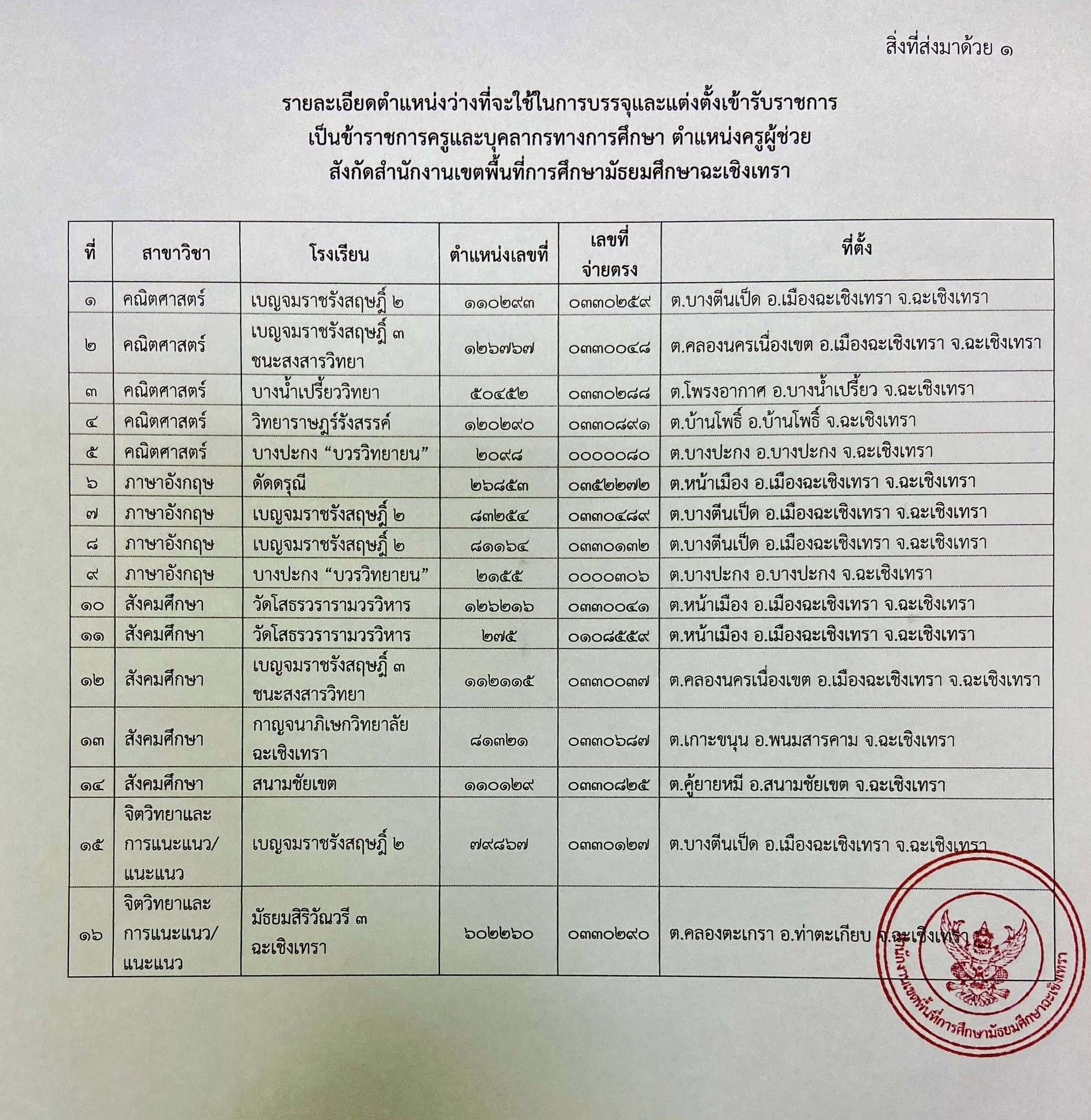 เอกสารประกาศ: คลิกเพื่อดูประกาศจาก สพม.ฉะเชิงเทรา