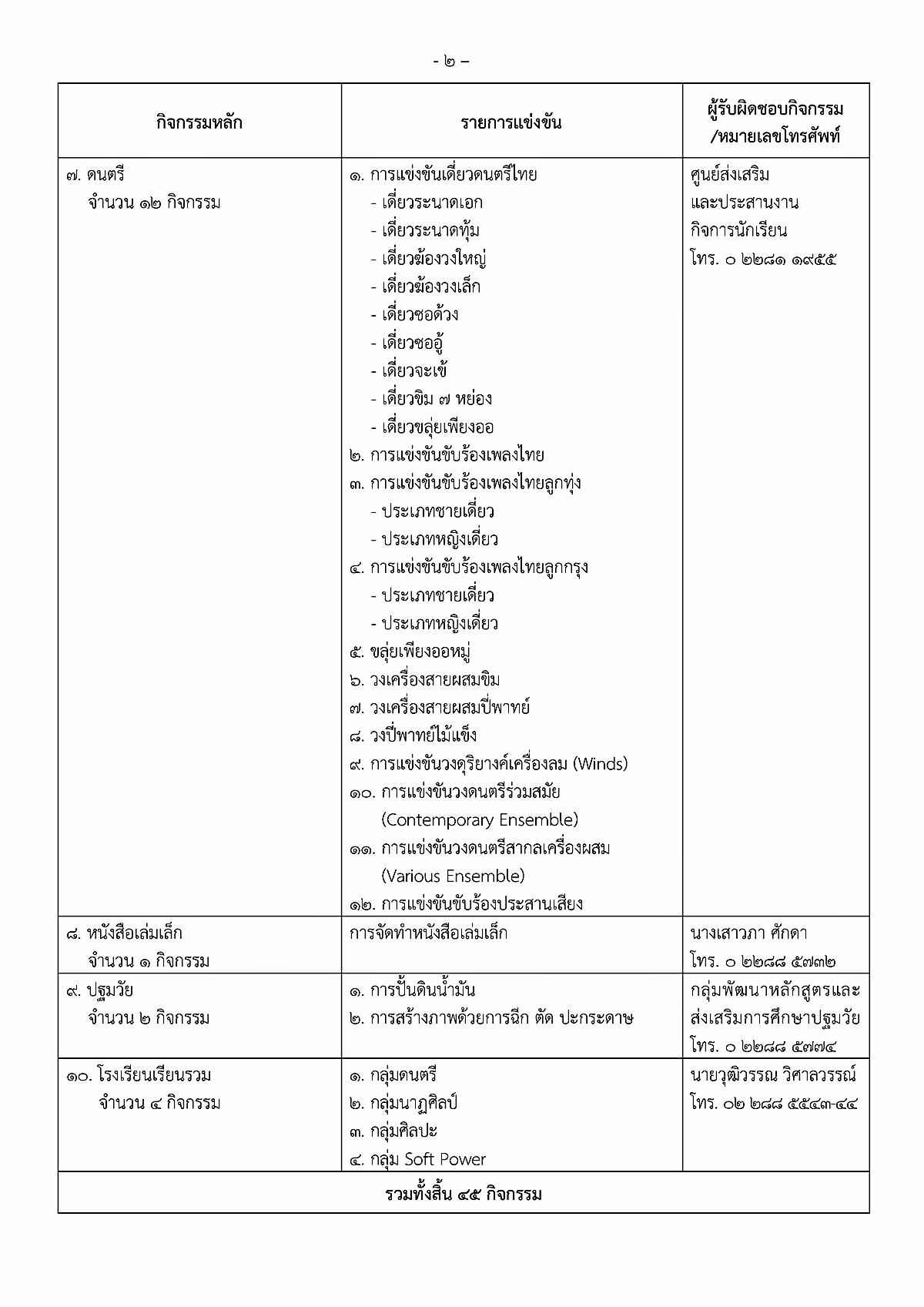 ส่วนการจัดกิจกรรมในปีการศึกษา 2570 จะมีการพิจารณาแนวทางที่เหมาะสมอีกครั้ง - 2. การแต่งตั้งคณะกรรมการและการรับรองผล: