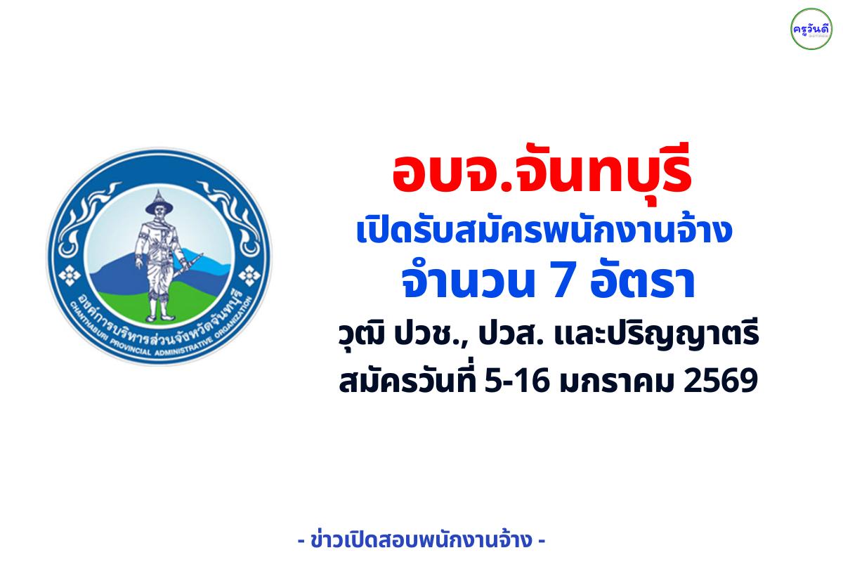 - สถานที่: ยื่นใบสมัครด้วยตนเอง ณ กองการเจ้าหน้าที่ ชั้น 3 องค์การบริหารส่วนจังหวัดจันทบุรี (ในวันและเวลาราชการ)