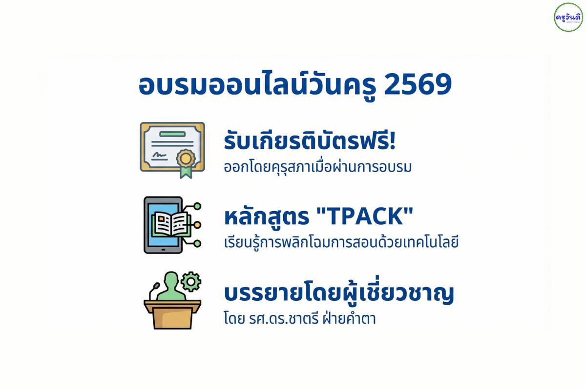 - สิ่งที่ได้รับ: เกียรติบัตร e-Certificate จากคุรุสภา (ใช้ประกอบการต่อใบอนุญาตประกอบวิชาชีพได้)