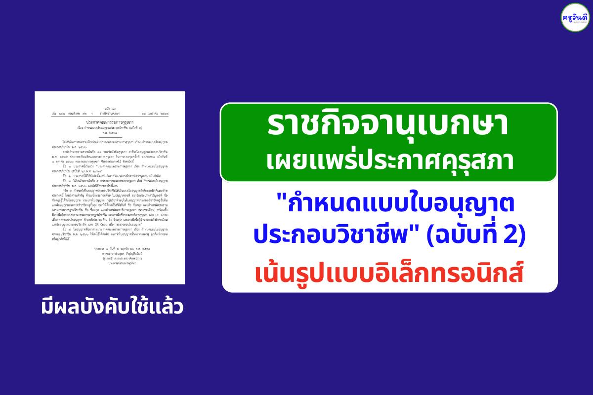 ประกาศฉบับนี้ให้ยกเลิกความในข้อ 5 ของประกาศเดิม (พ.ศ. 2566) และใช้ข้อความใหม่ที่กำหนดให้ใบอนุญาตประกอบวิชาชีพเป็น "แบบใบอนุญาตอิเล็กทรอนิกส์" โดยมีองค์ประกอบดังนี้: