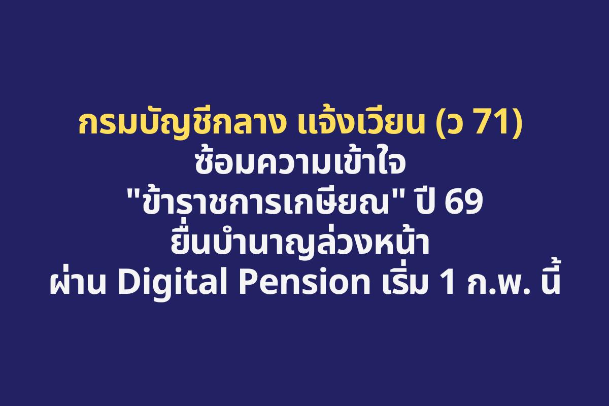 ทั้งนี้ เพื่อให้ข้าราชการและลูกจ้างประจำดังกล่าวได้รับบำเหน็จบำนาญและสวัสดิการจากทางราชการอย่างต่อเนื่อง และทายาทผู้มีสิทธิรับบำเหน็จบำนาญได้รับเงินด้วยความสะดวกรวดเร็ว รวมทั้งการปฏิบัติงานในการยื่นขอรับบำเหน็จบำนาญและการพิจารณาสั่งจ่ายบำเหน็จบำนาญสามารถตรวจสอบเอกสารหลักฐานประกอบการพิจารณาสั่งจ่ายที่จัดเก็บไว้ในระบบ Digital Pension เป็นไปอย่างเรียบร้อย กรมบัญชีกลางจึงขอซ้อมความเข้าใจ ดังนี้: