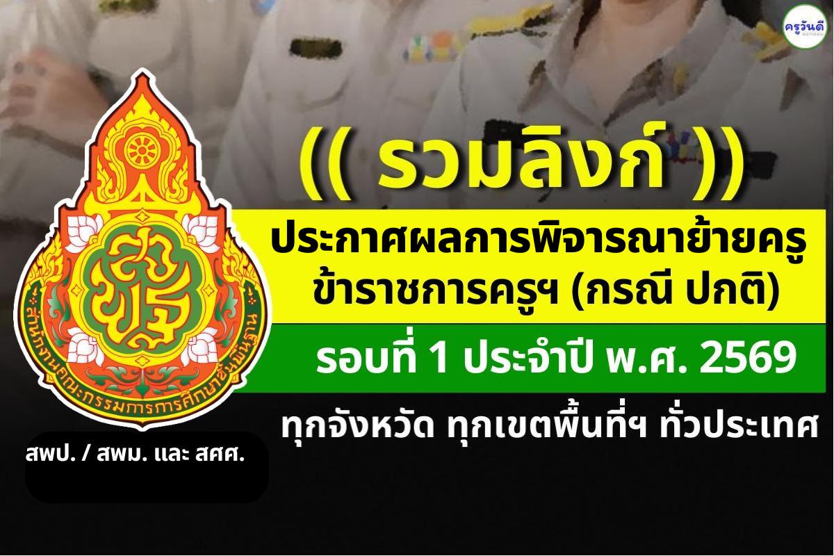 ขณะนี้ อ.ก.ค.ศ. เขตพื้นที่การศึกษาประถมศึกษา (สพป.) และมัธยมศึกษา (สพม.) ทั่วประเทศ ได้เริ่มพิจารณาประกาศผลการพิจารณาย้ายออกมาแล้ว ครูวันดีดอทคอม จึงได้รวบรวมลิงก์ประกาศผลย้ายและคำสั่งย้ายจากทุกเขตทั่วประเทศ มาไว้ในที่เดียว เพื่ออำนวยความสะดวกให้เพื่อนครูได้ตรวจสอบผลการย้ายได้อย่างรวดเร็วครับ