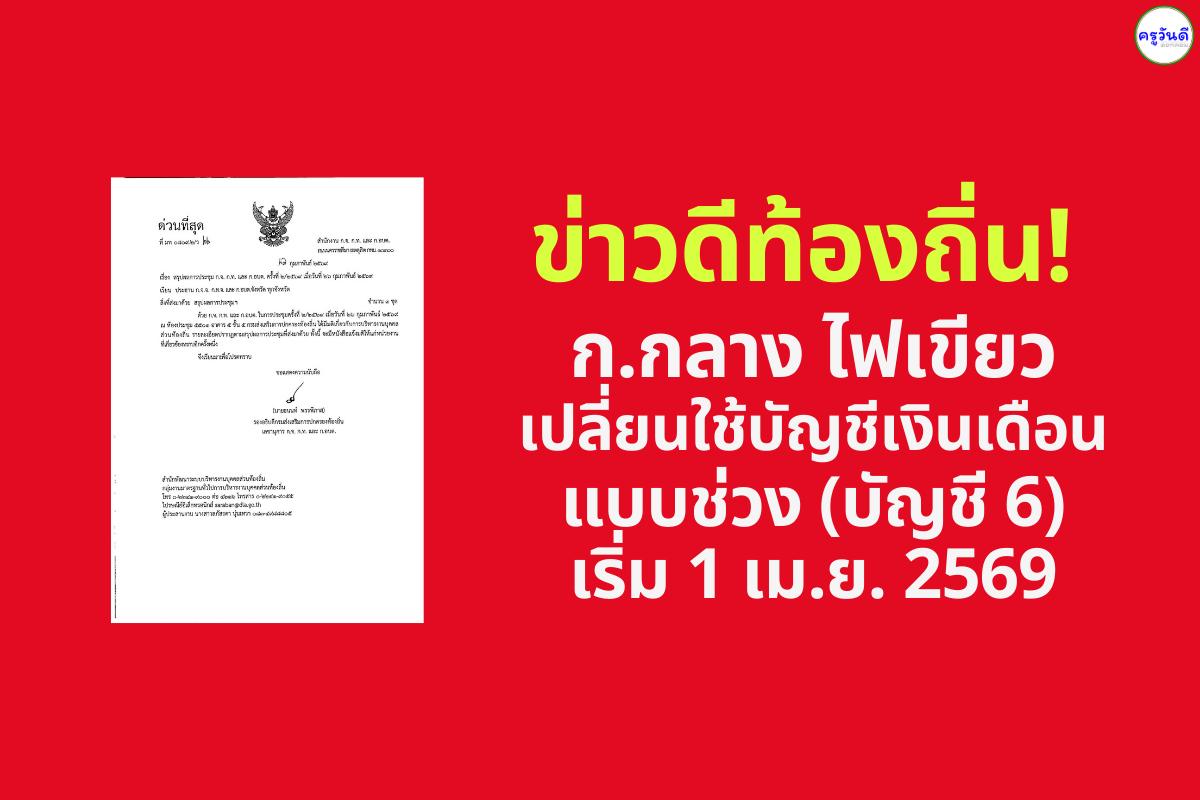 - ให้ใช้บัญชีเงินเดือนแบบช่วง (บัญชี 6) ตั้งแต่วันที่ 1 เมษายน 2569 เป็นต้นไป