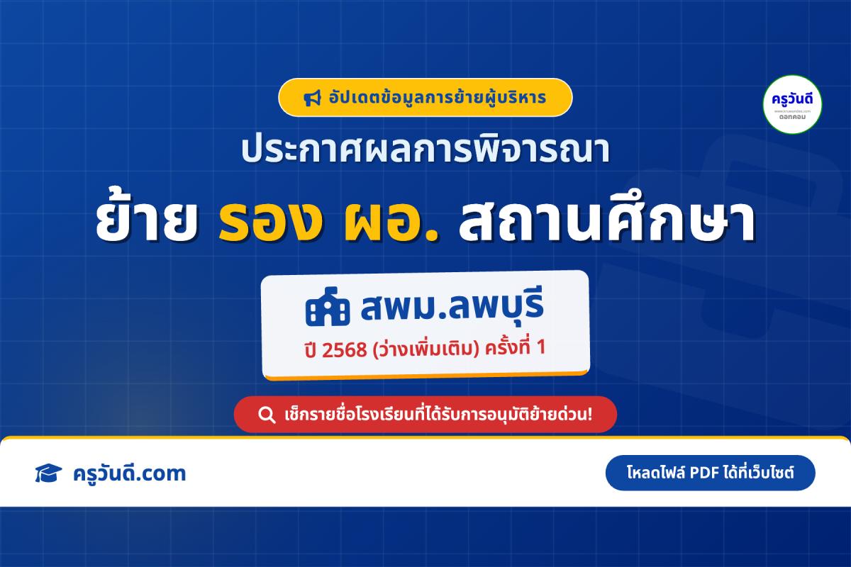 สวัสดีครับเพื่อนครูและผู้บริหารทุกท่าน! วันนี้ ครูวันดี มีข่าวดีมาอัปเดตกันอีกแล้วครับ ล่าสุดทาง อ.ก.ค.ศ. เขตพื้นที่การศึกษามัธยมศึกษาลพบุรี ได้มีมติอนุมัติผลการพิจารณาย้ายผู้บริหารสถานศึกษา (ในตำแหน่งรองผู้อำนวยการสถานศึกษา) หลังการย้ายประจำปี พ.ศ. 2568 หรือรอบว่างเพิ่มเติม ครั้งที่ 1 ออกมาเป็นที่เรียบร้อยแล้วครับ