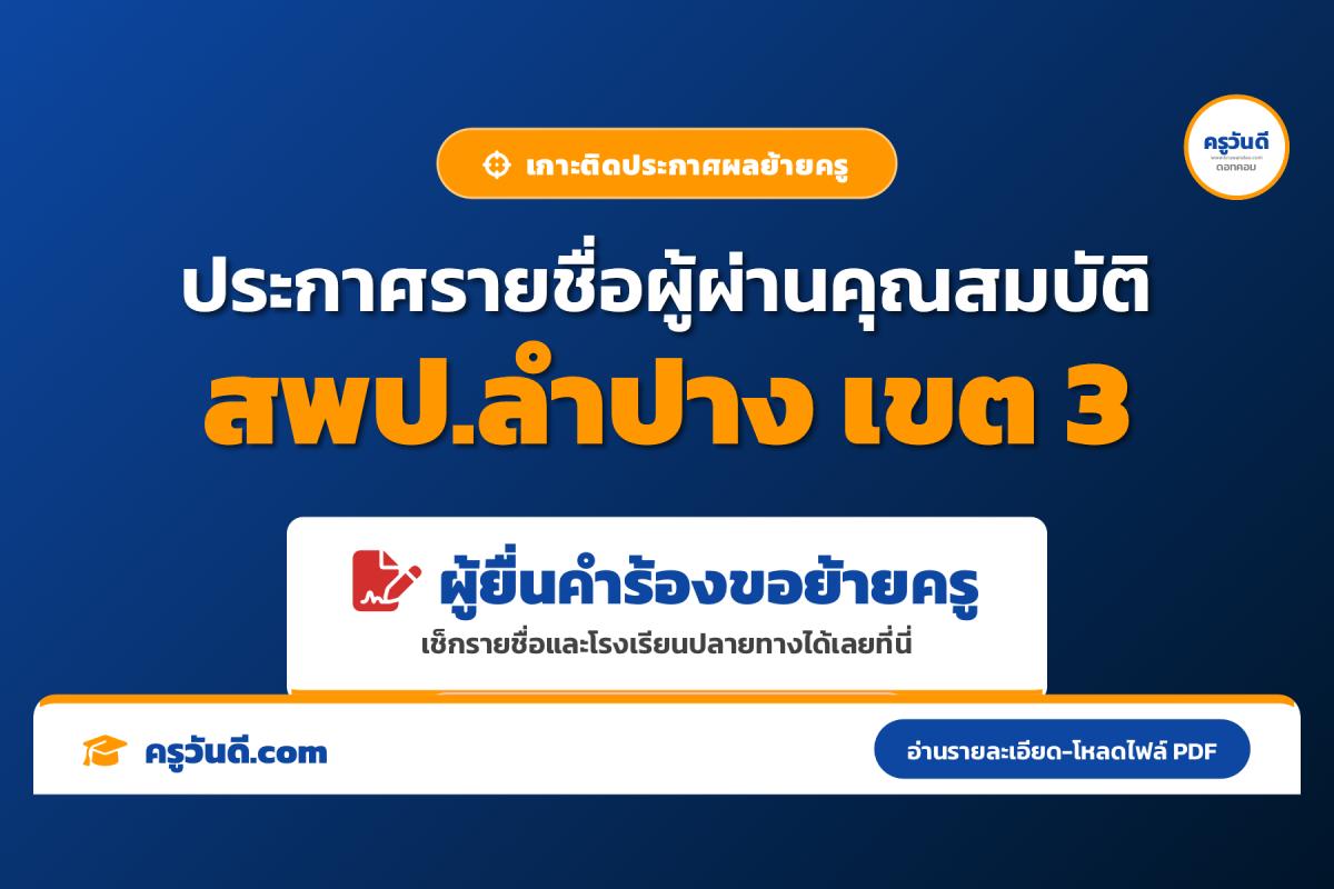 เช็กด่วน! สพป.ลำปาง เขต 3 ประกาศบัญชีรายชื่อผู้ยื่นคำร้องขอย้ายครู (ผ่านการตรวจคุณสมบัติแล้ว)