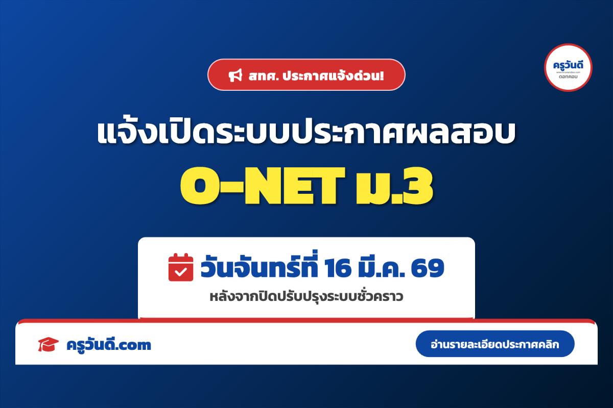 สทศ. แจ้งเปิดระบบประกาศผลสอบ O-NET ม.3 ในวันจันทร์ที่ 16 มีนาคม 2569
