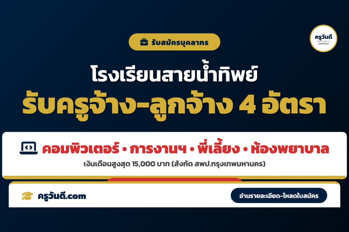 โรงเรียนสายน้ำทิพย์ สพป.กทม. เปิดรับสมัครครูอัตราจ้างและลูกจ้างชั่วคราว รวม 4 อัตรา