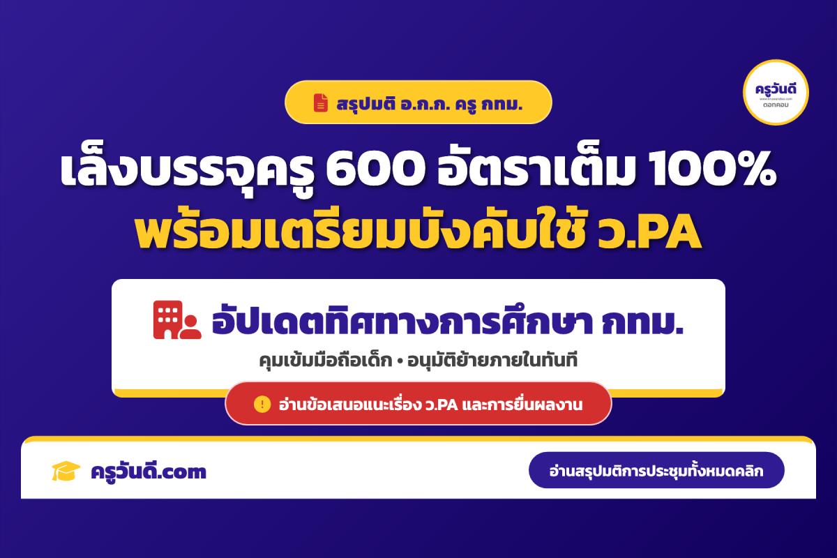 สรุปมติ อ.ก.ก. ครู กทม. ครั้งที่ 3/2569 เล็งบรรจุ 600 อัตราเต็มกรอบ พร้อมเตรียมบังคับใช้เกณฑ์ ว.PA