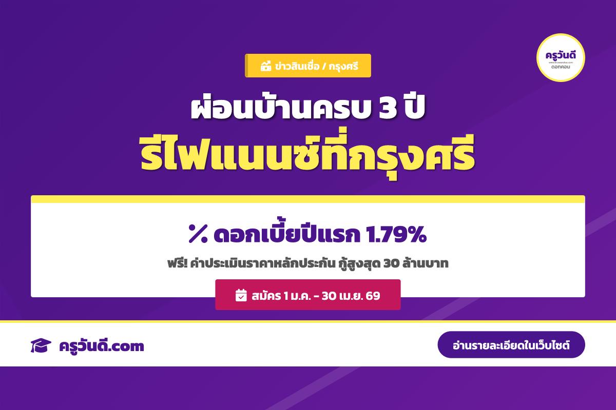 ครบ 3 ปี บ้านไหนๆ เค้าก็มารีไฟแนนซ์ที่ "กรุงศรี" ดอกเบี้ยคงที่ปีแรก 1.79% ต่อปี